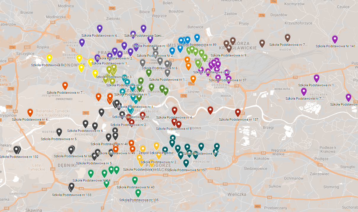 Główna lokalizacja: Kraków (wszystkie samorządowe szkoły podstawowe)
