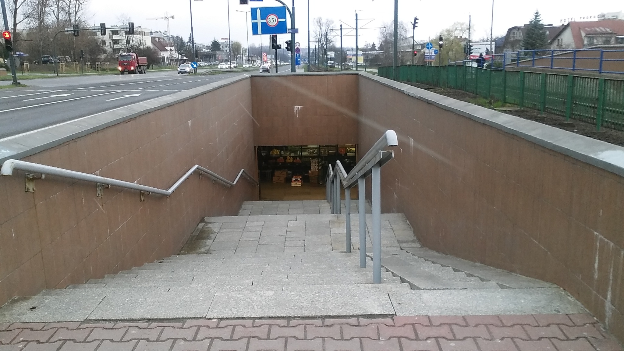 Budowa przejścia przez torowisko tramwajowe pozwalającego dojść do przystanku "Wlotowa" bez korzystania ze schodów i przejścia podziemnego