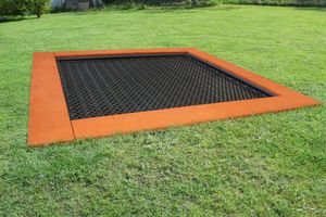 Trampolina jest urządzeniem całorocznym, wykonanym z trwałych materiałów, odpornych na działanie warunków atmosferycznych i przeznaczona jest do montażu na stałe w gruncie rodzimym lub nawierzchni placu zabaw.