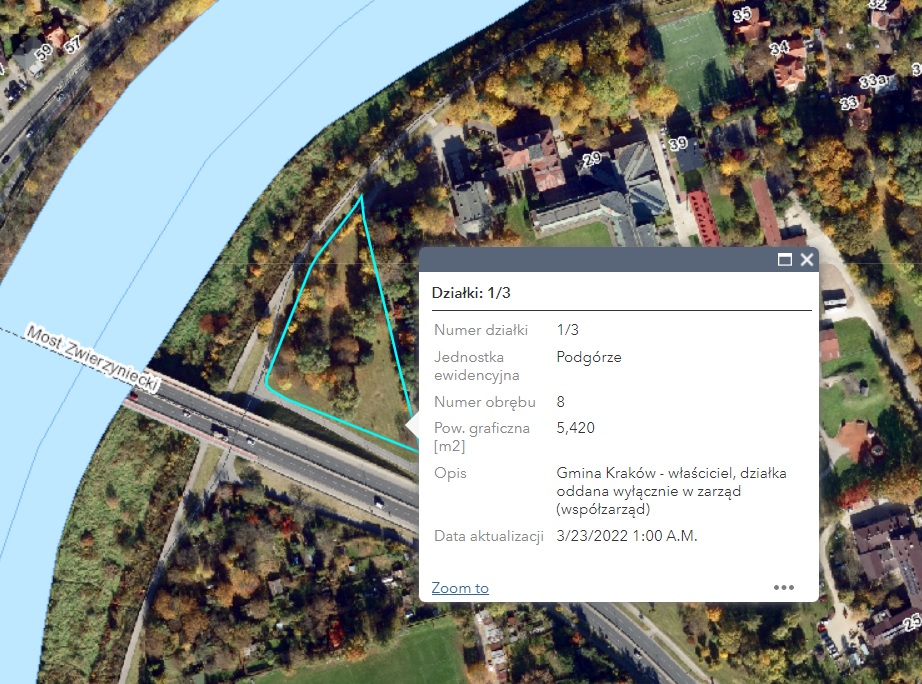 Wydział Planowania Przestrzennego Urzędu Miasta Krakowa przekazał, iż realizacja zadania na działce nr 1/3, obręb P-8, jednostka ewidencyjna Podgórze, nie jest możliwa ze względu na to, że ustalenia planu nie dopuszczają lokalizacji zadania we wskazanym miejscu. Oznacza to, że ww. działka znajduje się w terenie przeznaczonym pod zabudowę usługową, oznaczona symbolem U.1. W ramach przeznaczenia podstawowego (należy przez to rozumieć rodzaj przeznaczenia, które zostało ustalone planem jako przeważające na danym terenie wyznaczonym liniami rozgraniczającymi na rysunku planu) przewidziano funkcję zabudowy usługowej. Dodatkowo na ww. działce znajduje się teren przeznaczony pod drogę wewnętrzną, oznaczoną symbolem KDW.1 Zgodnie z zapisami UCHWAŁY NR LI/1410/21 RADY MIASTA KRAKOWA z dnia 13 stycznia 2021 r. w sprawie Regulaminu budżetu obywatelskiego Miasta Krakowa §17 ust. 1 pkt.4 W ramach procedury budżetu obywatelskiego nie mogą być realizowane projekty które w dniu zgłoszenia stoją w sprzeczności z obowiązującymi w mieście planami, politykami, strategiami, programami i innymi uchwałami Rady i zarządzeniami Prezydenta oraz §17 ust. 1 pkt.6 które naruszałyby obowiązujące przepisy prawa, w szczególności przepisy miejscowych planów zagospodarowania przestrzennego, prawa osób trzecich, w tym prawa własności. W związku z powyższym projekt otrzymuje opinie negatywną.