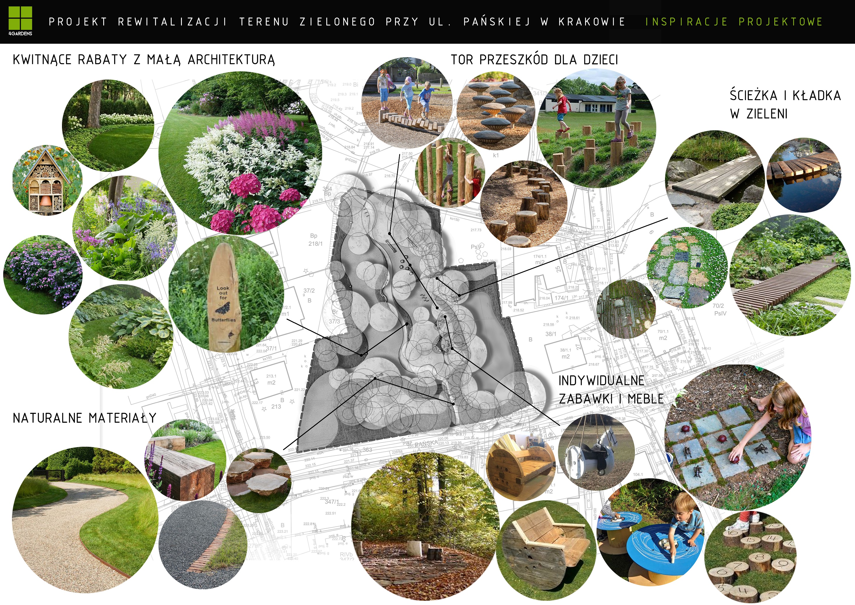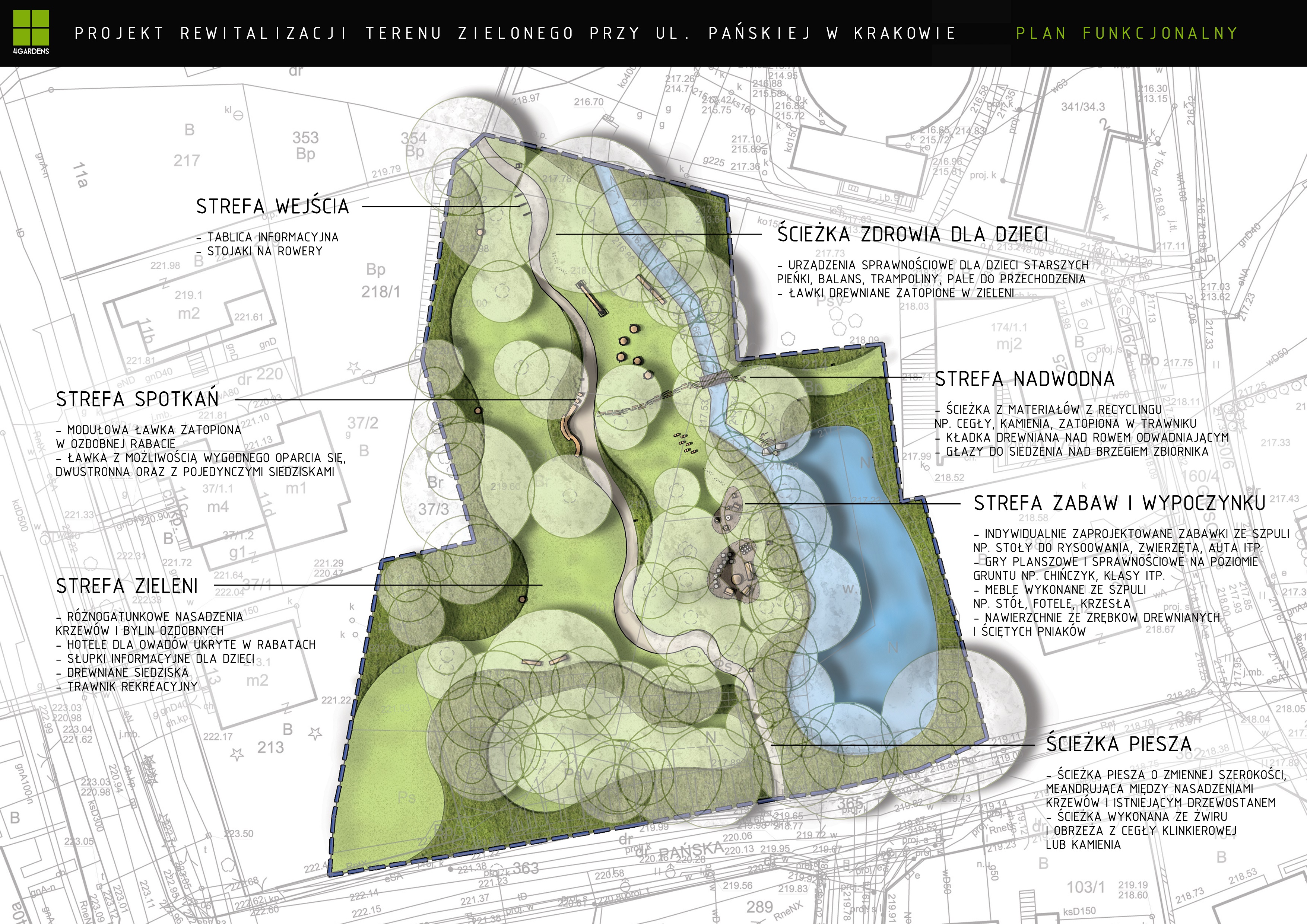 Myślą przewodnią projektu jest zieleń, zieleń która aktywizuje i edukuje. Układy roślinne będą tak zaprojektowane, aby stanowiły ciekawą kompozycję pod względem form i koloru o każdej porze roku. Różnorodność wprowadzonych gatunków sprawi, że pory kwitnienia roślin będą następować po sobie co sprawi, że zieleń ta będzie cały czas atrakcyjna wizualnie.