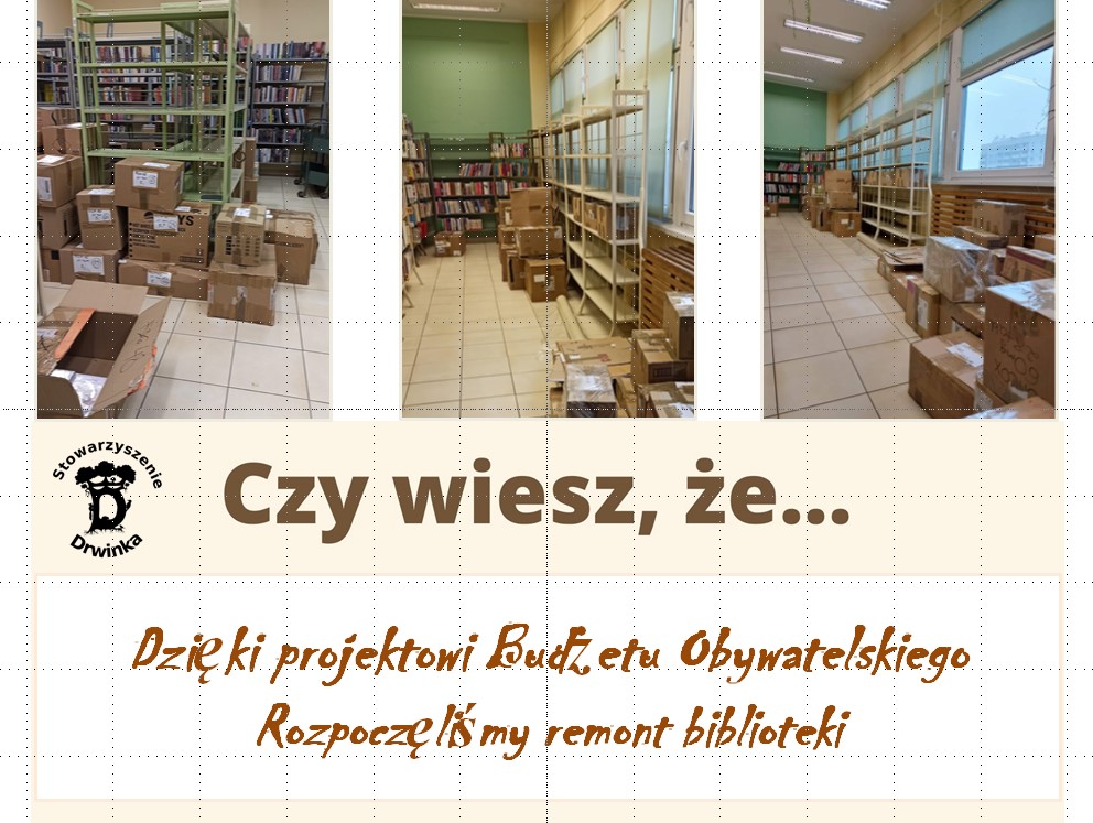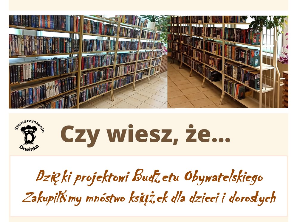| Zakup materiałów bibliotecznych | Są to materiały umożliwiające promocję biblioteki, materiały na warsztaty, podpórki do książek oraz inne potrzebne w czasie różnych wydarzeń. | 5 000,00 PLN |
