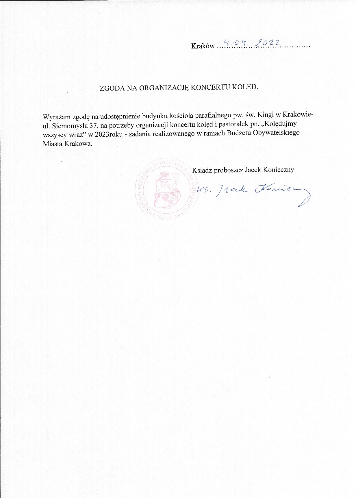 | Zorganizowanie koncertu kolęd | Realizacja zaplanowanego wydarzenia | grudzień 2023 |