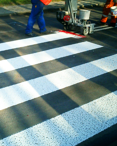 3. Namalowanie nowych pasów lub poprawienie starych na przejściu, które jest słabo widoczne albo zatarte. Oznakowanie poziomego przejścia dla pieszych (tzw. zebra), przeprowadzone zostanie przy użyciu trwałych materiałów w technologii gruboziarnistej, chemoutwardzalnej i strukturalnej.
