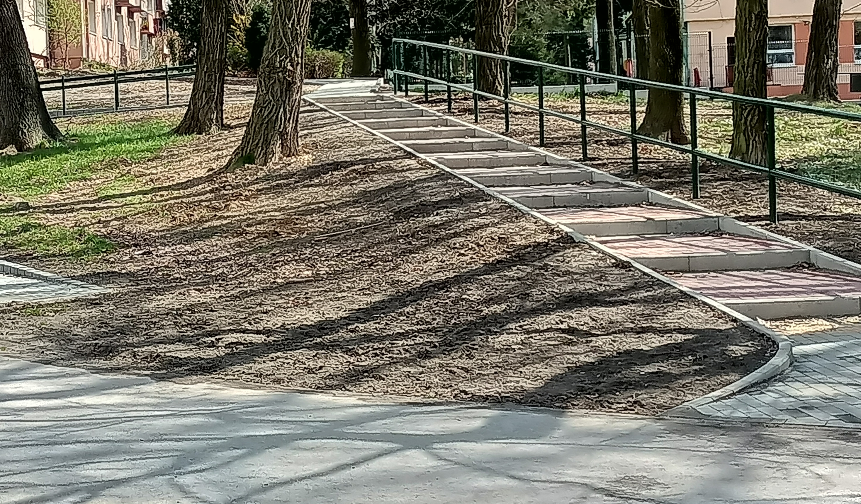 Projekt powinien uwzględniać ominięcie miejsc (trawników) na których bawią się dzieci oraz zjeżdżają w zimie na sankach. Przykładowa lokalizacja nasadzeń na załączonym zdjęciu.