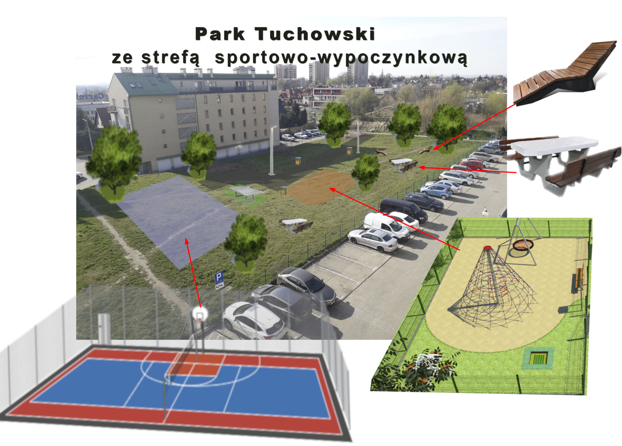 Park Tuchowski ze strefą wypoczynkową to miejsce, gdzie każdy znajdzie coś dla siebie. Może być przestrzenią na rodzinny posiłek na świeżym powietrzu, punktem regularnych spotkań czy po prostu miejscem, gdzie można aktywnie spędzić czas.