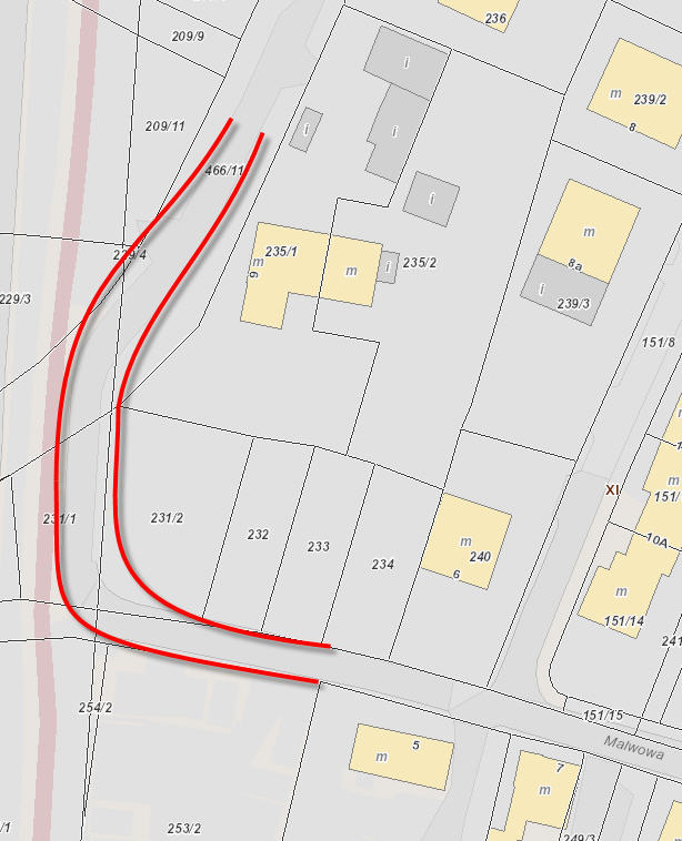 W minimalnym zakresie 230/1 – działka i tak jest częścią drogi, więc nie ma możliwości wykorzystania jej na żadne inne cele