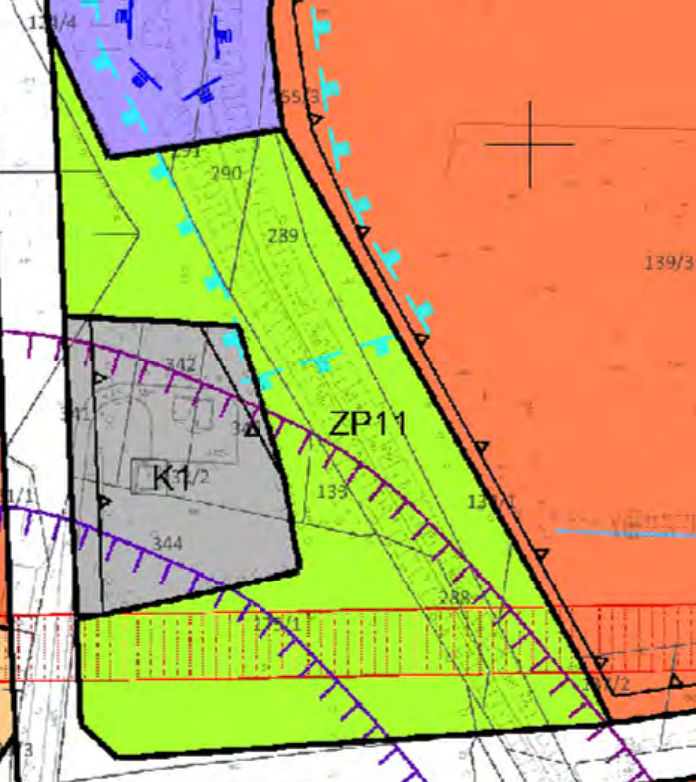 Główna lokalizacja: Działki lub ich część: 133, 290, 291, 289, 137, 124/4. Zgodnie z powierzchnią z MPZP Kraków "Czyżyny- Łęg" dla terenu oznaczonego jako ZP11