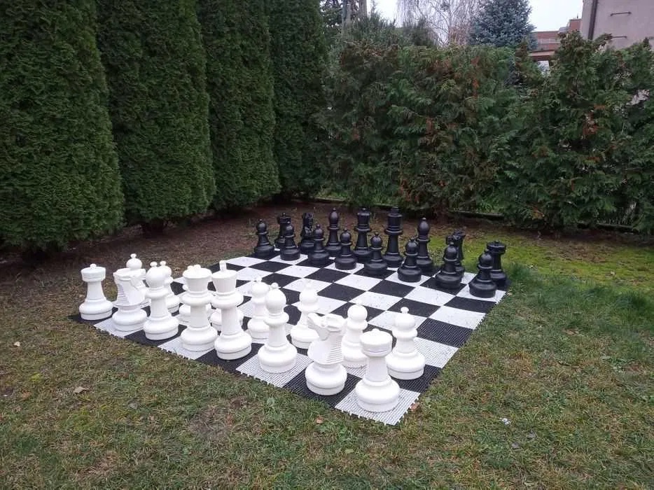 1. Projekt i budowa dużej, marmurowej planszy do gry w szachy (8x8m), z figurami o wysokości do 1,5m. Figury zostaną wykonane z twardego plastiku z recyklingu, tak żeby wiatr ich nie porwał, ale i tak zostawiając opcję dla wygodnej gry bez utrudnienia w postaci przenoszenia zbyt ciężkich figur