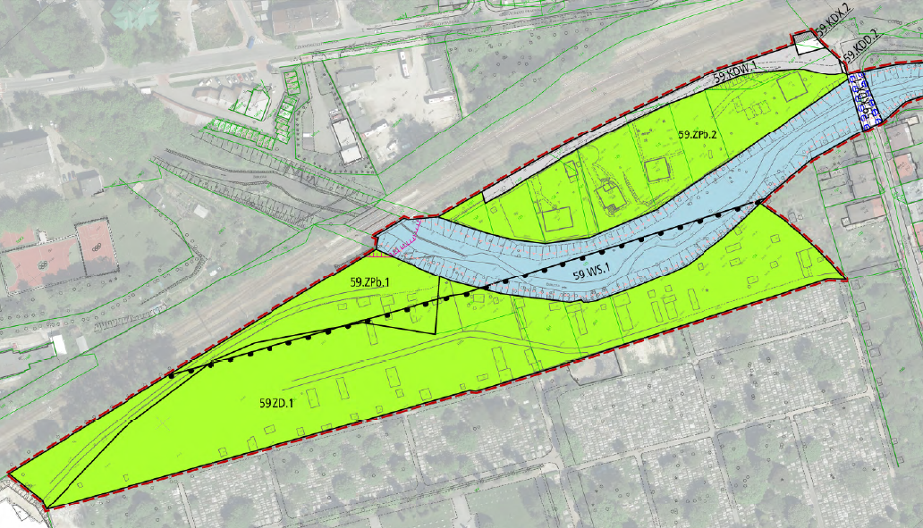 - opracowanie koncepcji programowo-funkcjonalnej terenu wraz ze wskazaniem potencjalnych lokalizacji kładek pieszo-rowerowych nad rzeką oraz przejść pod torami kolejowymi umożliwiającymi swobodne przejście lub przejazd rowerem pomiędzy dzielnicami,