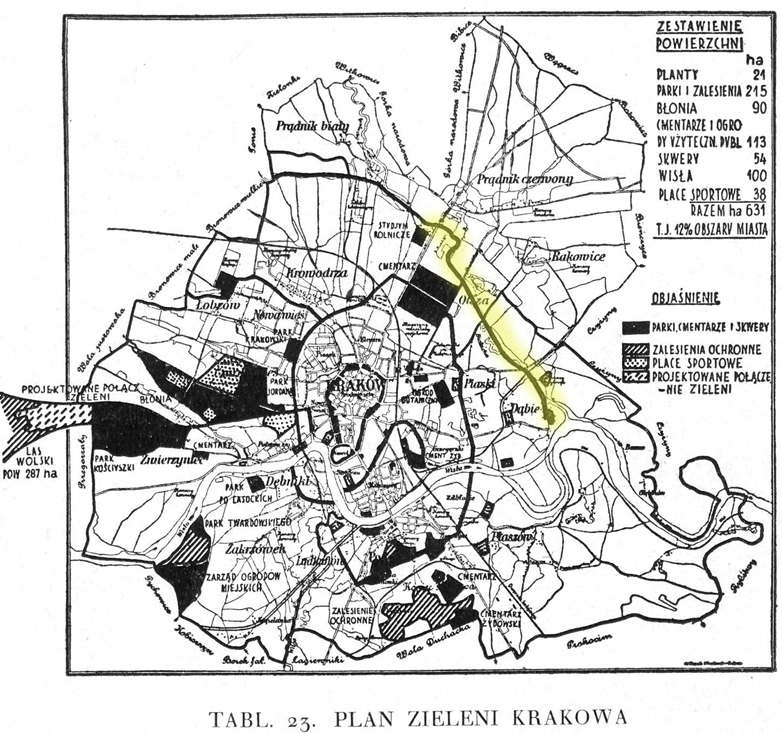 Wydawać by się mogło, że o połączeniu pieszym, łączącym naturalne, zastane walory przyrodnicze i kulturowe terenu pomiędzy dzielnicami chyba zapomniano dlatego Autor projektu proponuje połączenie dzielnic właśnie za pomocą parku rzecznego. Na trójstyku granic Dzielnic I, II i III znaleźć można bieg Małej Linii Obwodowej z 1942 roku, obecnie zyskującej na znaczeniu ze względu na obsługę linii Aglomeracyjnej. Stanowi ona mocną barierę pomiędzy okolicami stanowiącym poprzednio całość (np. dawna posiadłość i folwark Potockich i ulice na południe od obecnej ul. Pilotów w Olszy zostały podzielone na ślepe odcinki kończące się nasypem Linii). Jednocześnie stanowi silny potencjał kulturowy ze względu na wartości urbanistyczne i liczne wartościowe obiekty dziedzictwa znajdujące się na przedmiotowym terenie.