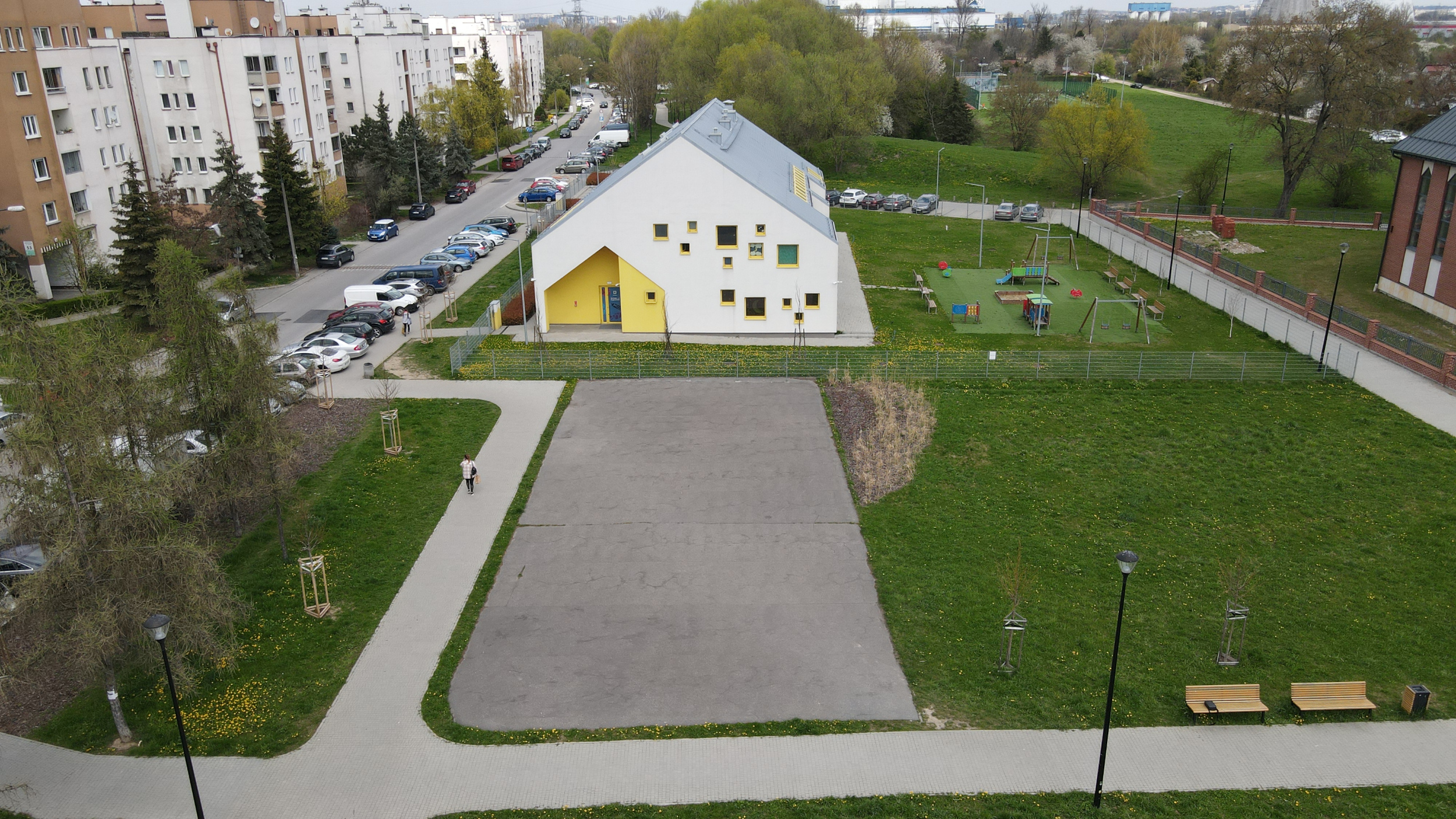 Projekt zakłada przebudowę istniejącego starego boiska asfaltowego na ogólnodostępny plac z gładkiej, równej betonowej nawierzchni, przeznaczonego do jazdy na rolkach, wrotkach, hulajnogach czy deskorolkach, zarówno dla dzieci jak i dla osób dorosłych.
