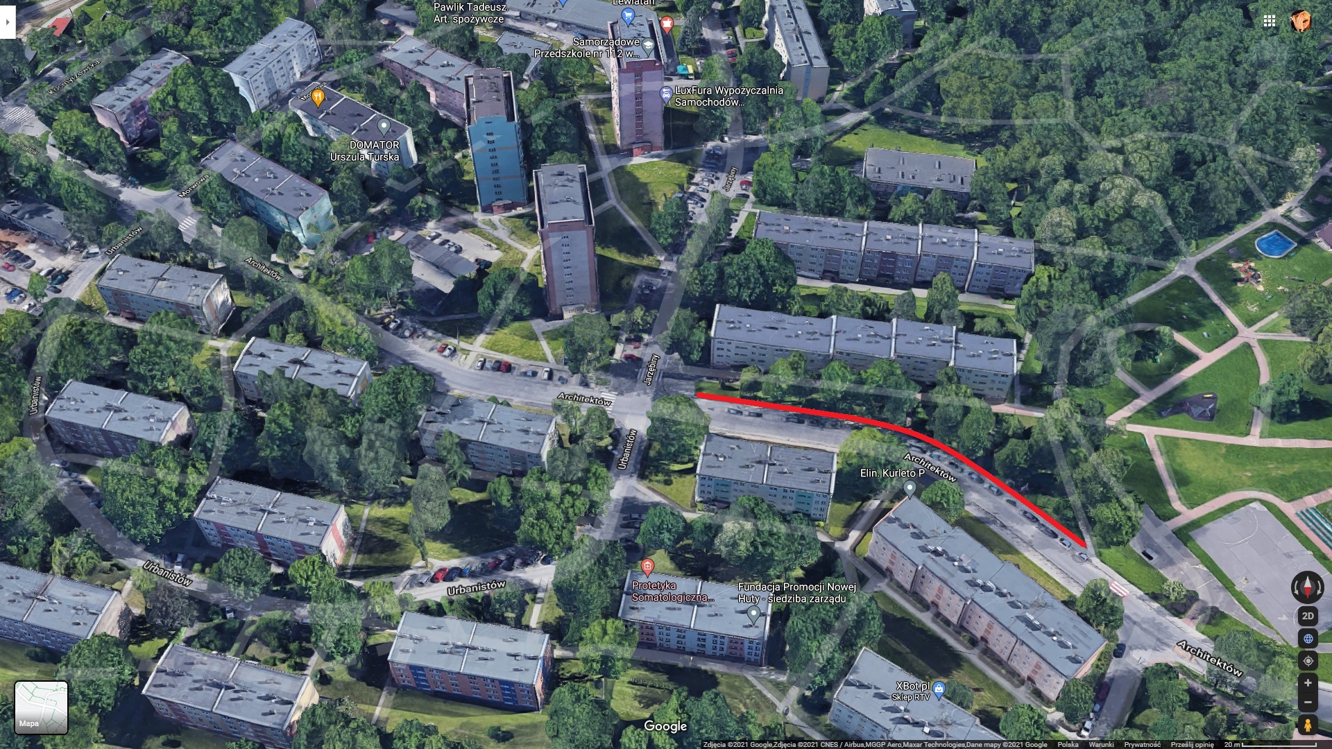 Ponadto przedmiotowy odcinek ul. Architektów od ulicy Zielony Jar do ulicy Jarzębiny przeszedł generalny remont w 2021 roku i podlega gwarancji na wykonane prace do 11.04.2027 r.