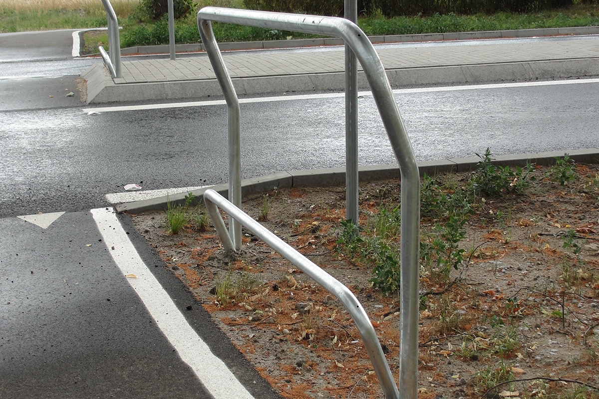 2. Montaż podpórki rowerowej przy ścieżce rowerowej na Rondzie Czyżyńskim.