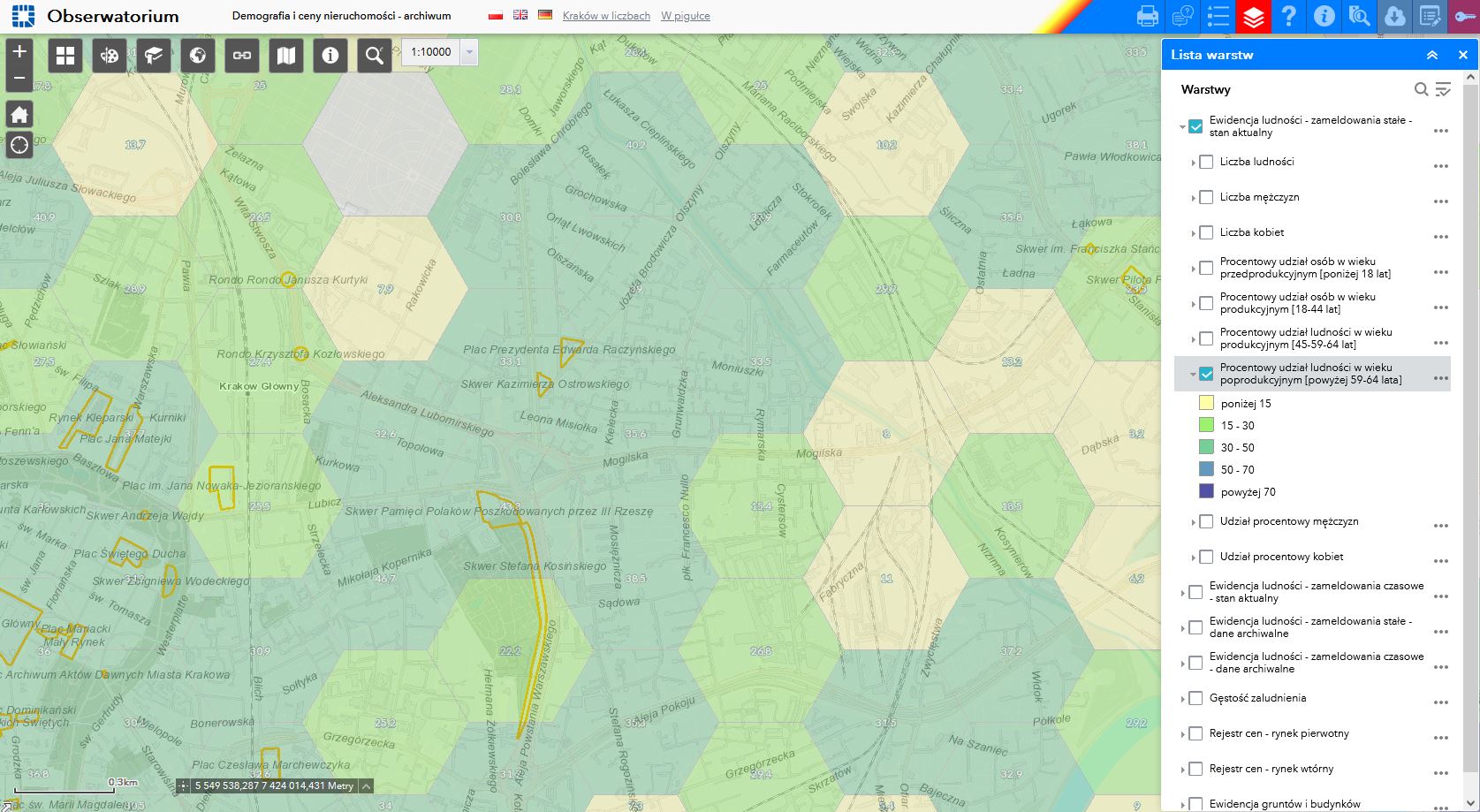W Dzielnicy II zauważyć można spory odsetek osób starszych. Analizy dostępne w MSIP oraz system GIS powinny wspierać analizę przestrzenną możliwych lokalizacji ławek.