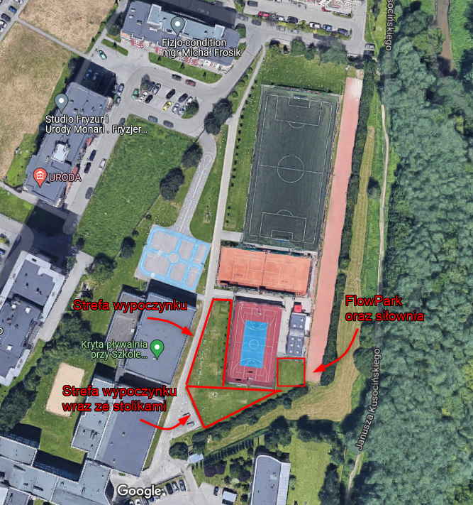 Ze względu na bardzo ciasną zabudowę oraz tereny osiedlowe taka strefa wypoczynku mogłaby powstać na terenie zielonym dookoła szkoły. Pomysł bardzo spodobał się dyrekcji szkoły. Szkoła zapewniła że teren zielony jest dostępny dla mieszkańców do późnych godzin wieczornych.