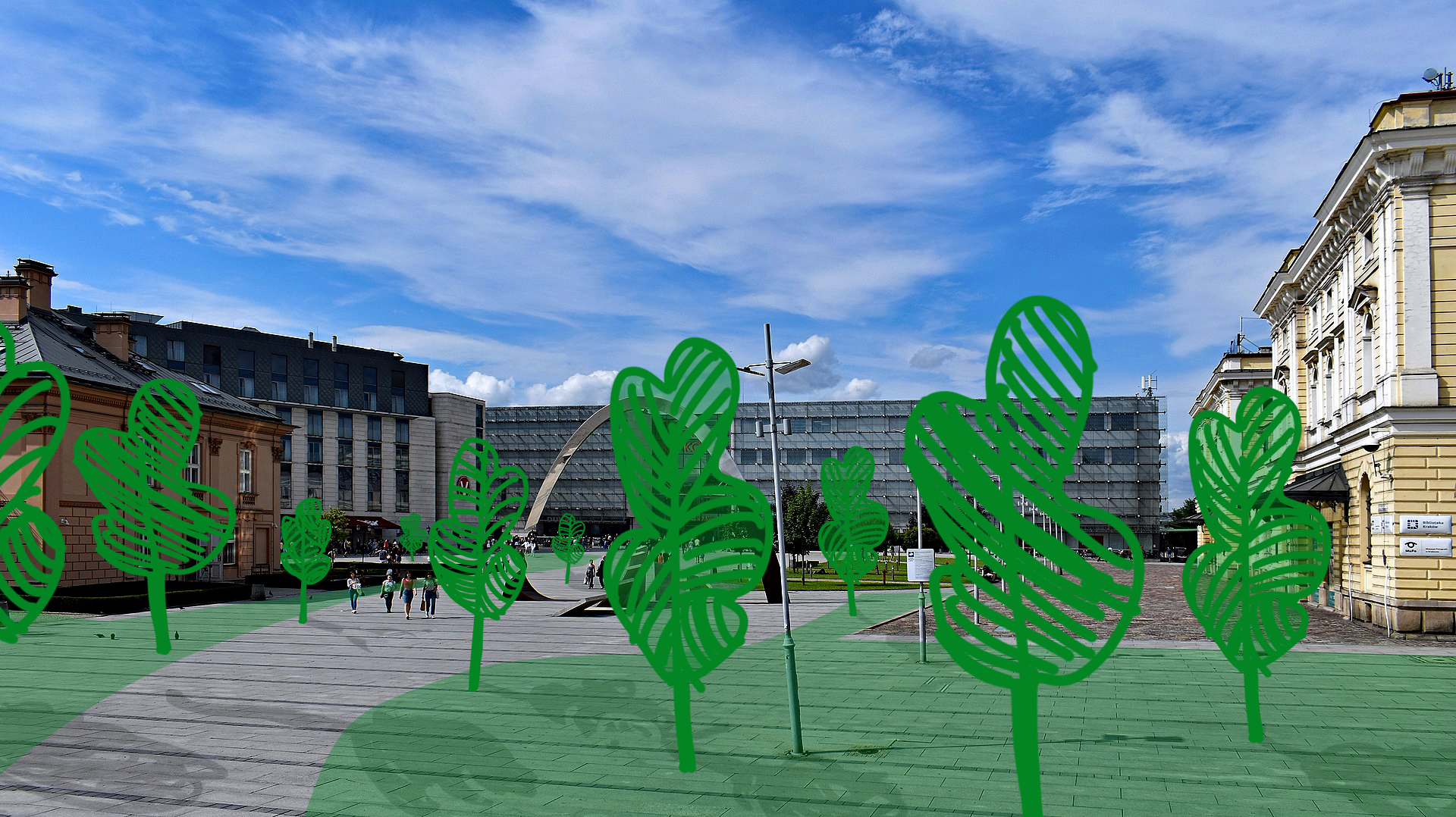 Pamiętajmy, że będzie coraz cieplej i należy każde betonowe miejsce, jeśli jest tylko taka możliwość, powinno stać się zielone. Obecny plac to betonowa patelnia. W upalne dni nikt nie siedzi na marmurowych ławkach, bo jest za gorąco i nie ma nigdzie cienia.