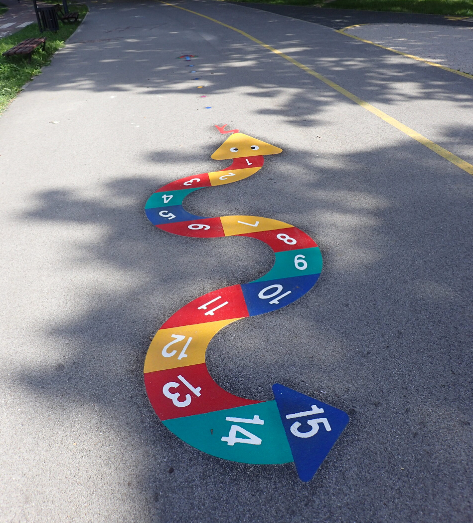 Gry podwórkowe są wykonane z prefabrykowanej masy termoplastycznej, odznaczają się dobrą przyczepnością do podłoża, wysoka odpornością na ścieranie i wpływ warunków atmosferycznych. Maja piękne kolory i są bezpieczne dla dzieci.