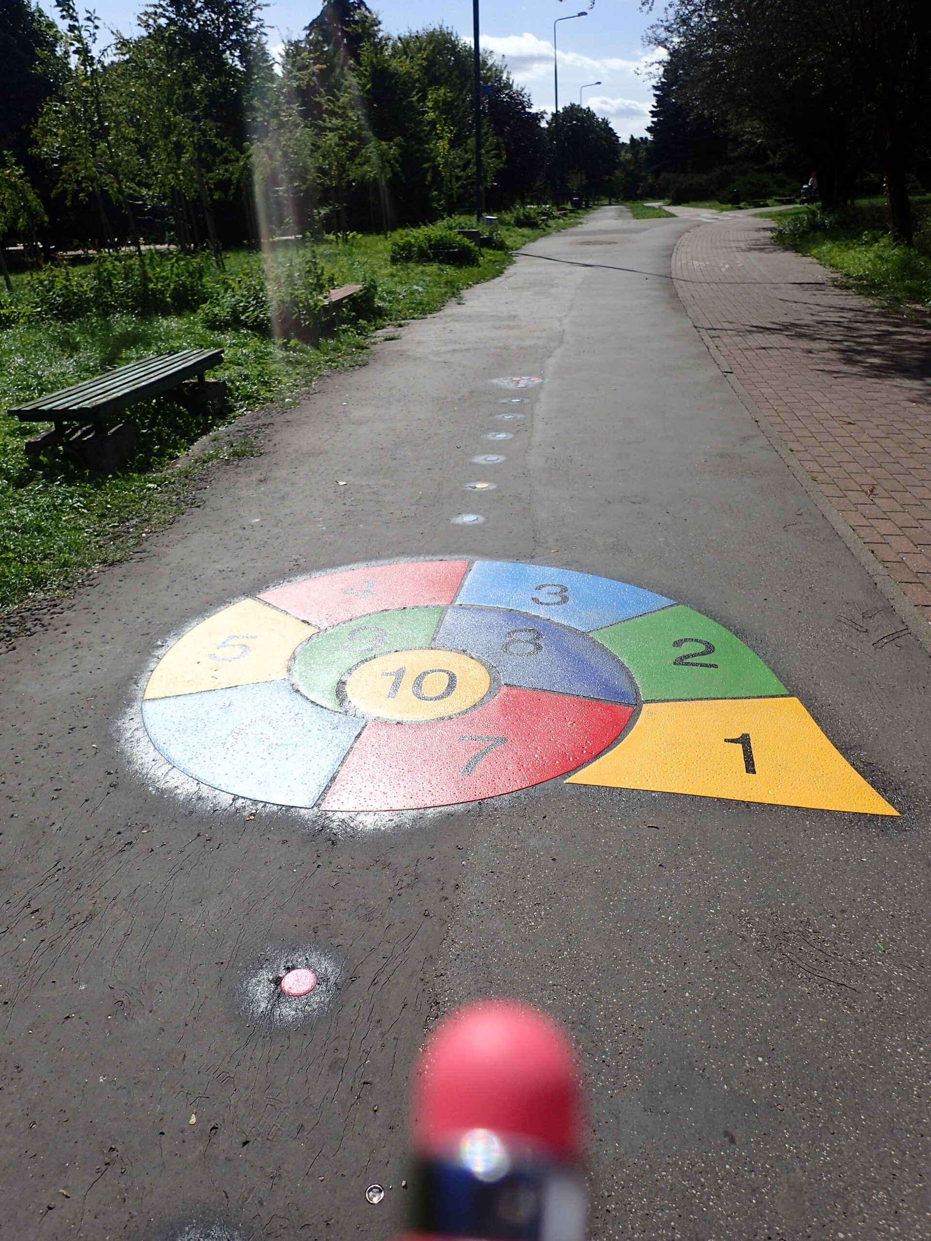 Chcemy umieścić ogólnodostępny zestaw gier podwórkowych (malunki na chodnikach, naziemne elementy z prefabrykowanej masy termoplastycznej) w parku Reduta, aby zachęcić dzieci i młodzież do ruchu i poznawania dawnych gier i zabaw podwórkowych. Wszystko w modnym dzisiaj temacie wypraw kosmicznych.