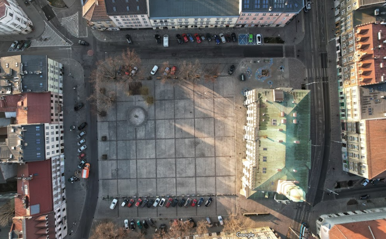 Plac Wolnica z lot ptaka, marzec 2022, fot. Marek Szczepański, Google Maps