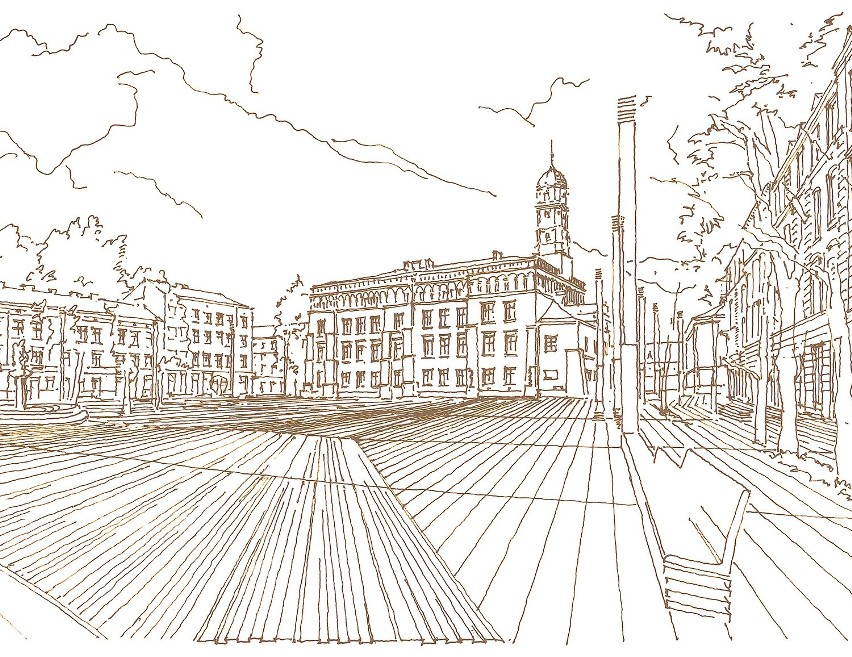 Koncepcja przebudowy Placu Wolnica z drewnianą nawierzchnią, biuro projektów lewicki / łatak