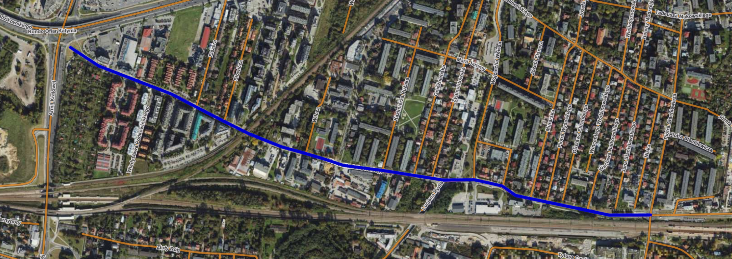 Główna lokalizacja: ul. Radzikowskiego (od Ronda Ofiar Katynia do skrzyżowania z ul. Stachiewicza i Wybickiego)