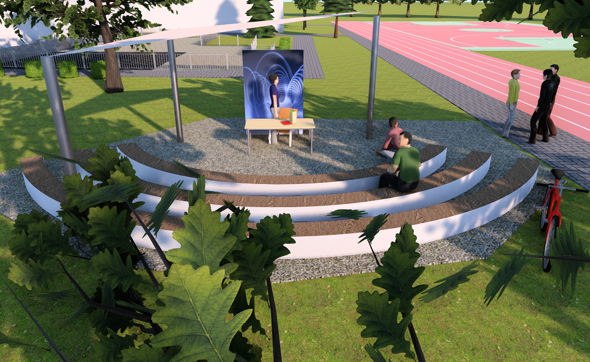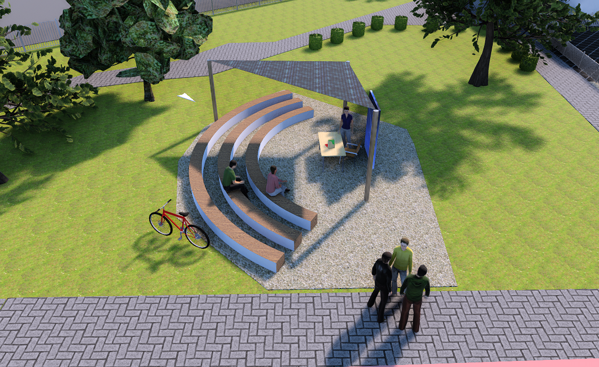 Proponujemy stworzenie klasy na świeżym powietrzu, która stanie się ciekawą alternatywą do poszerzenia możliwości logistycznych w szkole. Przy sprzyjających warunkach od wiosny do jesieni mogłaby stanowić miejsca, gdzie jedna klasa mogłaby mieć zajęcia lekcyjne, odciążając budynek szkolny oraz pozwoliłoby to na chwilę oddechu dla dzieci oraz miłe spędzenie czasu przez lokalną społeczność.