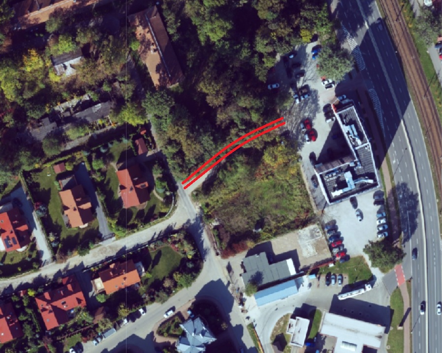 Główna lokalizacja: Działka nr 171/9 obręb 9 Podgórze, w miejscu istniejącego przejścia częściowo asfaltowego, częściowo z płyt betonowych i częściowo z udeptanej ziemi