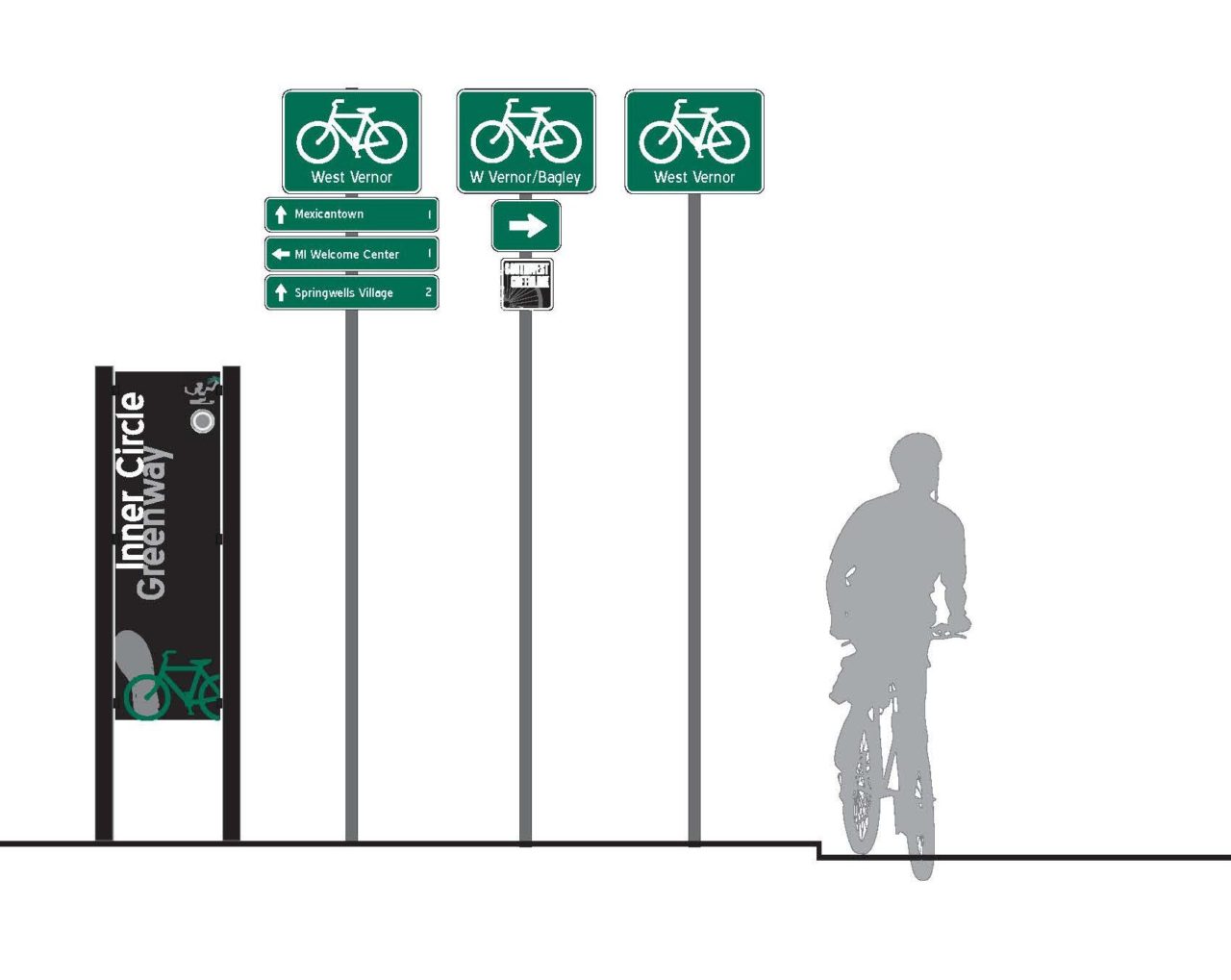 - Stworzenie projektu systemu informacji kierunkowej dla ruchu rowerowego i opracowanie koncepcji oznakowania.