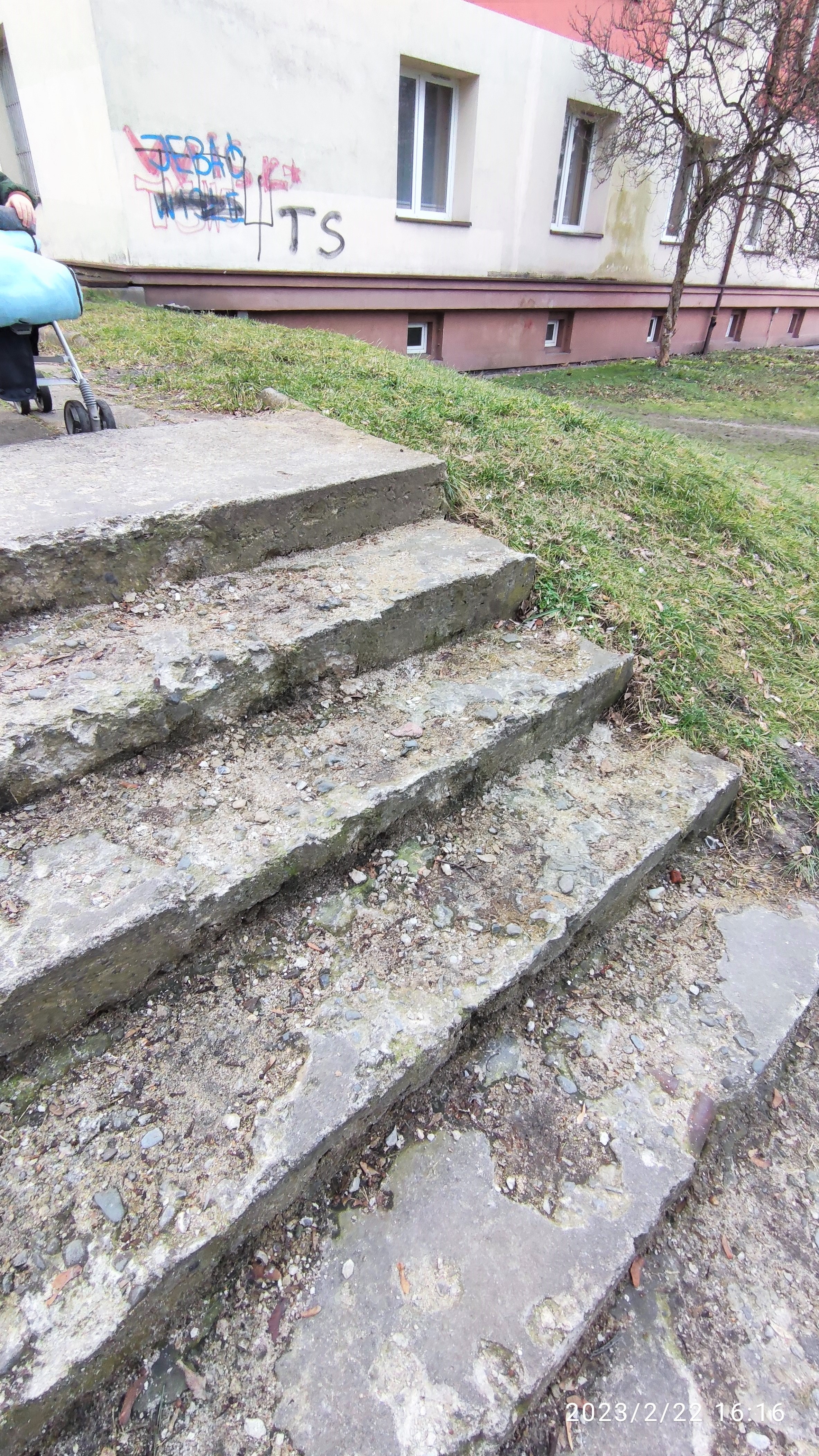 | modernizacja schodów lub wykonanie podjazdu dla wózków na sąsiednim trawniku | modernizacja schodów lub wykonanie podjazdu dla wózków na sąsiednim trawniku | marzec 2024 |