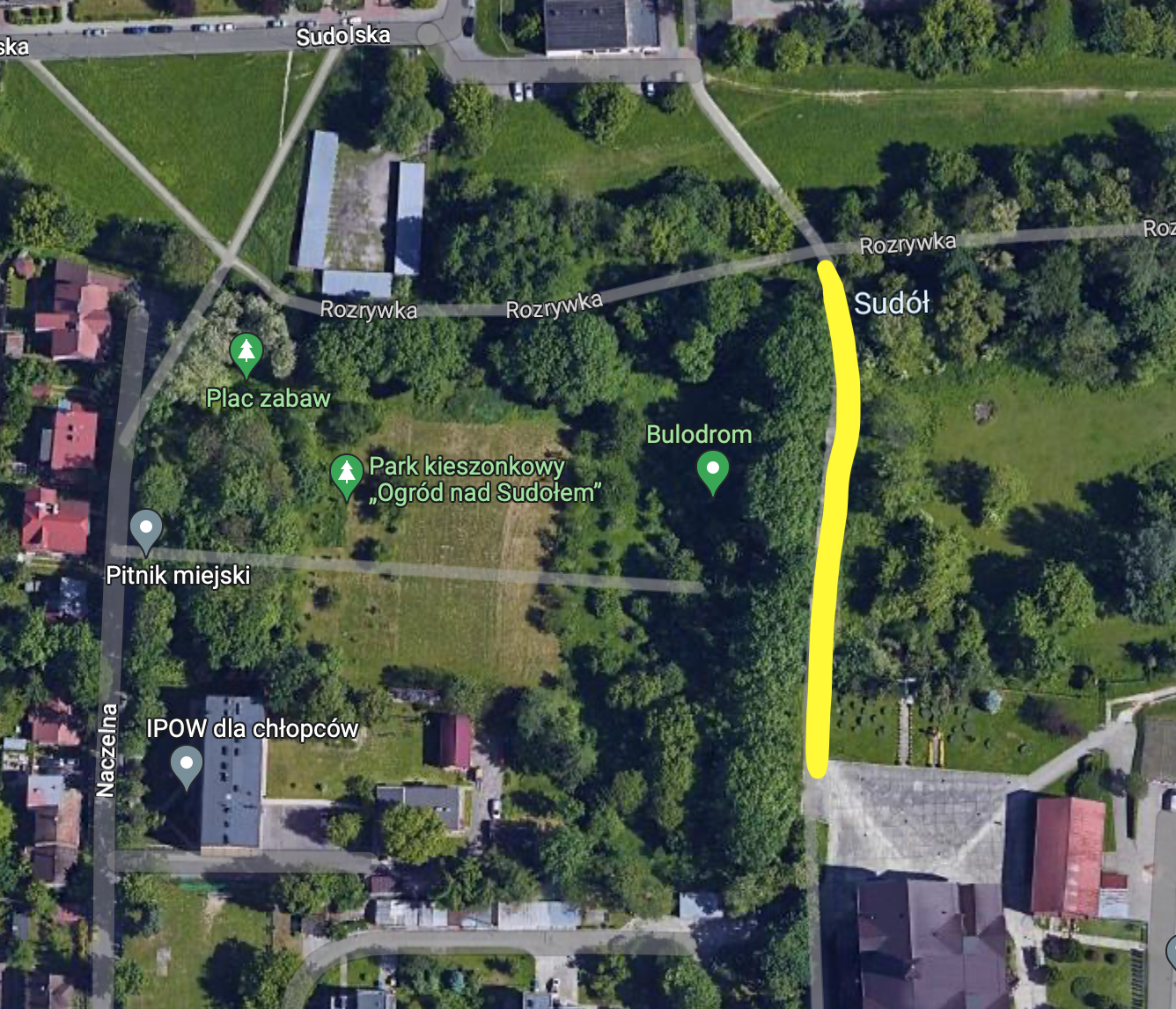 Projekt ma na celu remont chodnika wzdłuż "Ogrodu nad Sudołem" (ul. Naczelna) od strony kościoła.