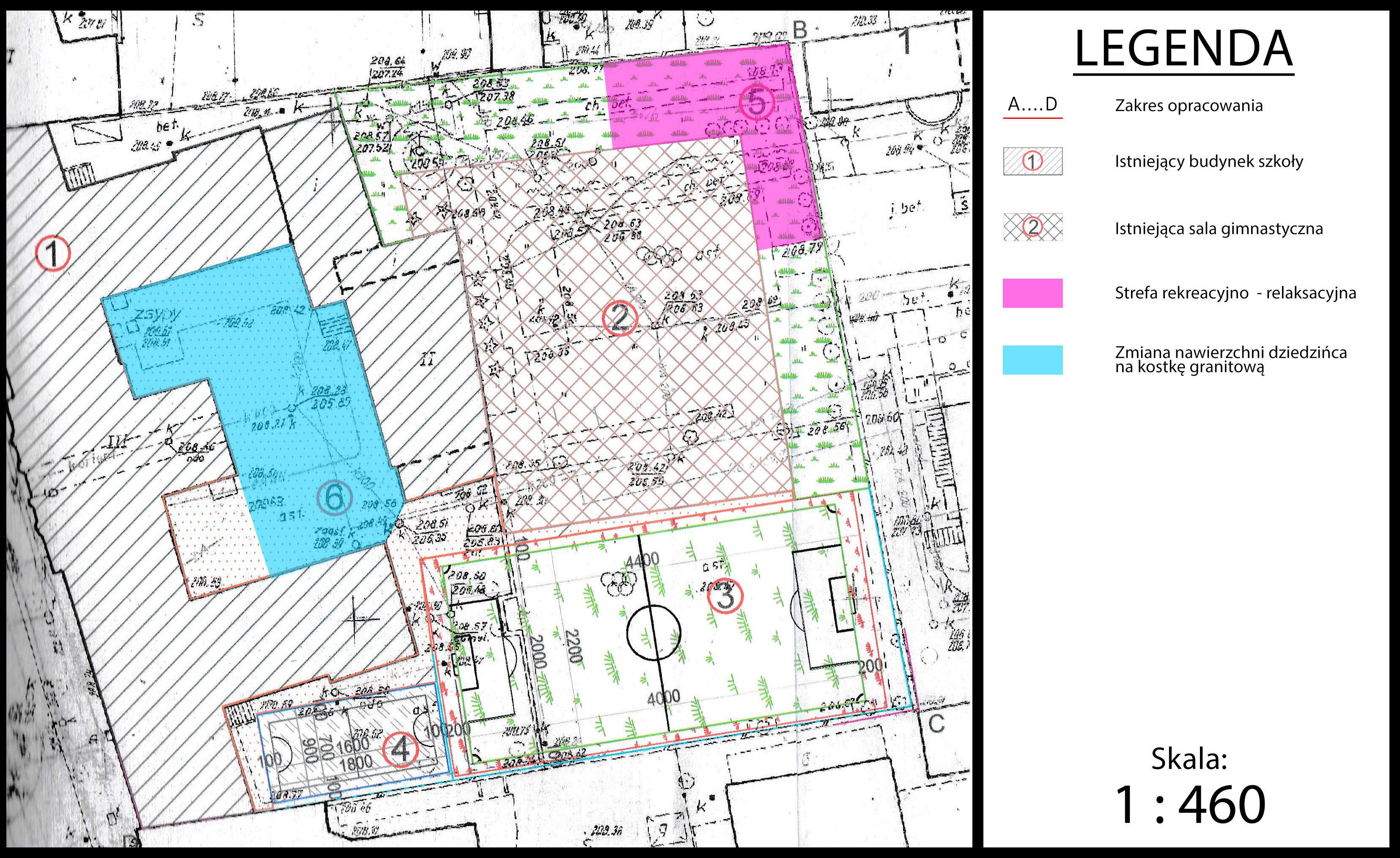 Miejscem realizacji projektu jest dziedziniec oraz ogródek za halą sportową II Liceum Ogólnokształcącego im. Króla Jana III Sobieskiego w Krakowie. Projekt obejmuje renowację funkcjonującego parkingu dziedzińca szkolnego wraz z zamontowaniem nowej wiaty rowerowej oraz zagospodarowanie trawnika za halą sportową w celu utworzenia strefy o charakterze rekreacyjno-relaksacyjnym umożliwiającej odpoczynek na świeżym powietrzu oraz prowadzenie lekcji przy sprzyjającej pogodzie.