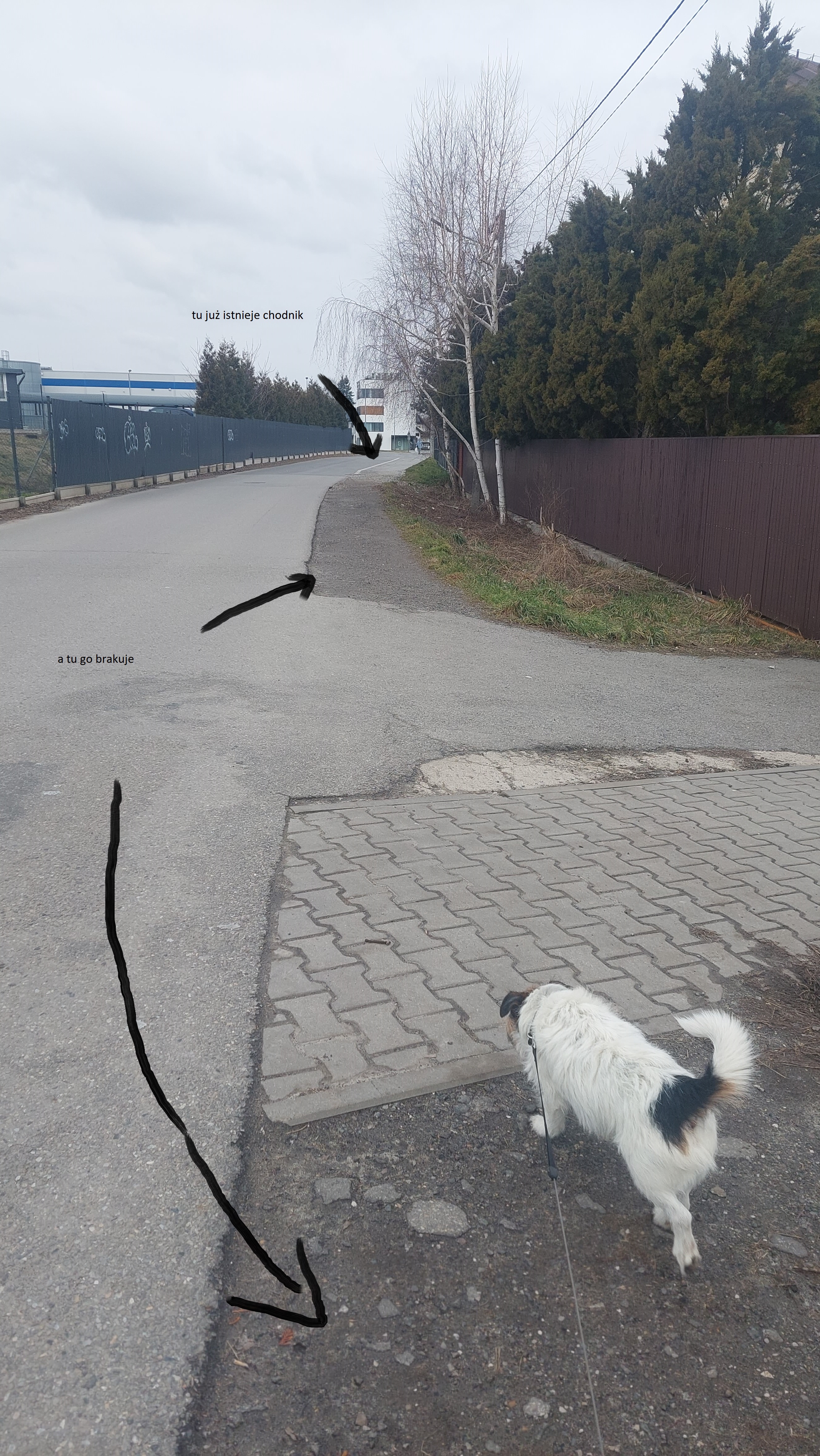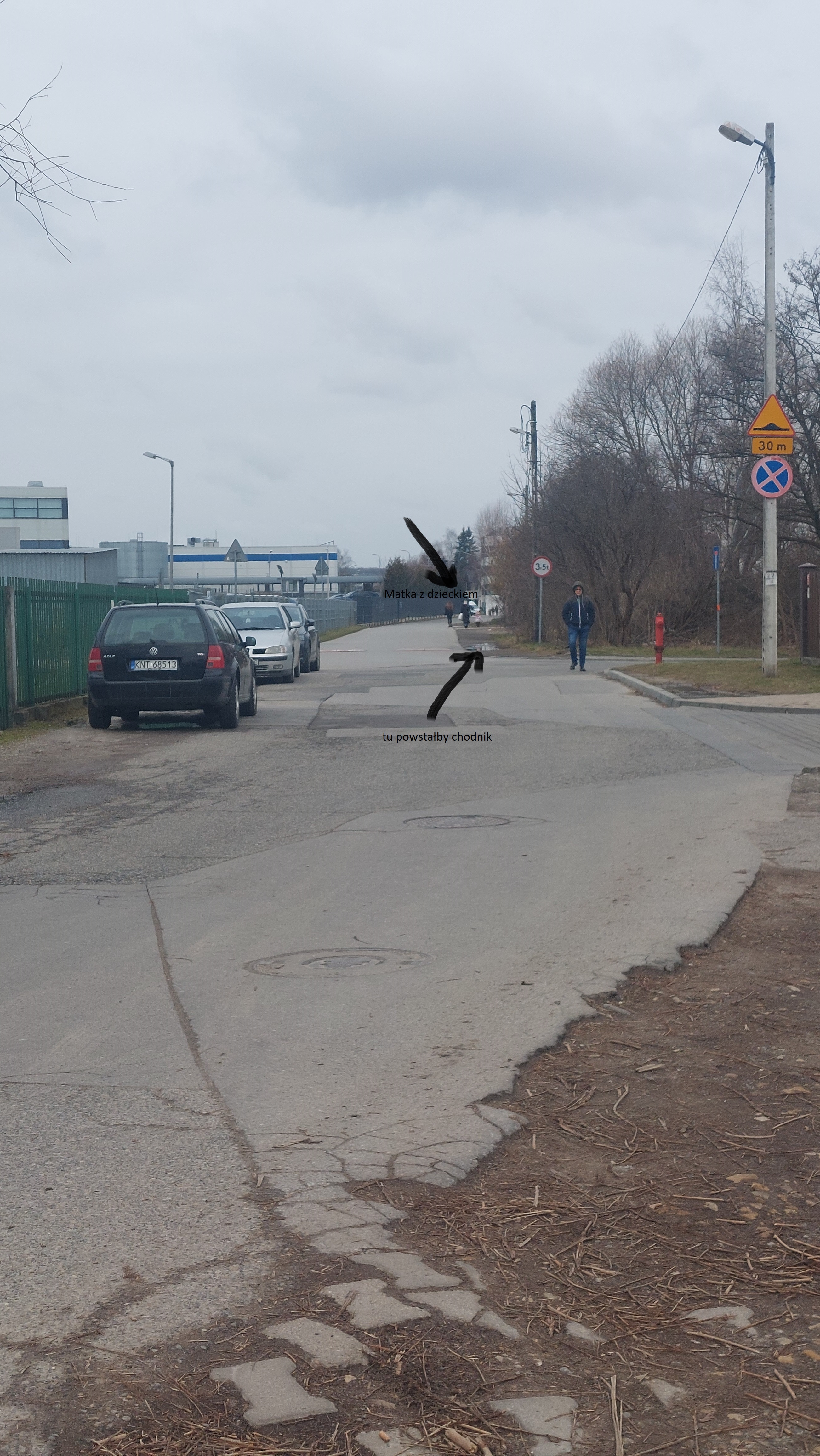 Obecnie rejon ul. Chełmońskiego od wiaduktu w kierunku ul. Jasnogórskiej jest generalnie zaniedbany. Piesi mieszkańcy okolicznych osiedli poruszają się bezpośrednio po drodze lub błotnistym, częściowo utwardzonym poboczem. Chodniki są budowany fragmentarycznie, głównie wokół centrum handlowego. Znacznie utrudnione jest dojście do przystanków komunikacji miejskiej, sklepów, przedszkola, szkoły, kościoła. Rodzice z wózkami, spacerowicze, niepełnosprawni, dzieci oraz rowerzyści narażeni są na niebezpieczeństwo potrącenia a w najlepszym przypadku... ochlapania przez przejeżdżające samochody. W zasadzie poruszają się po ulicy, po której jeżdżą i parkują samochody