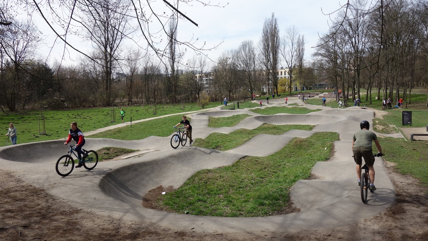 Choć pumptracki projektowane są w głównej mierze z myślą o rowerzystach, użytkownicy hulajnóg, deskorolek, rolek i wrotek również z powodzeniem mogą z niego korzystać.