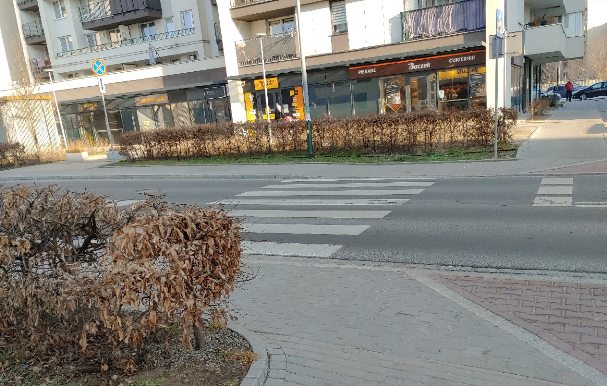 - Pierwsze z przejść znajduje się za zakrętem, co sprawia, że piesi mogą być mniej widoczni dla prowadzących pojazdy.