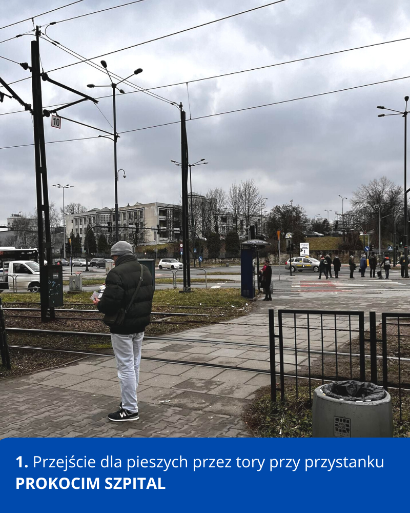 Główna lokalizacja: Przejścia dla pieszych wzdłuż linii tramwajowej (ciąg ulic: Wielicka, Teligi)