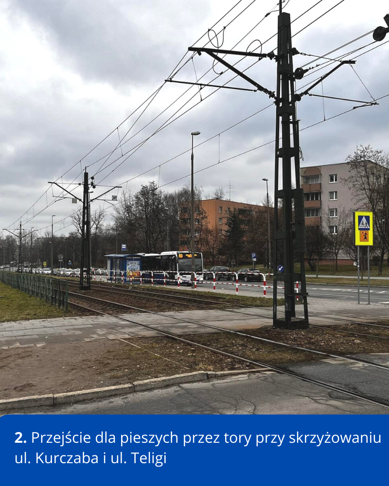 - Przejście dla pieszych przez tory przy skrzyżowaniu ul. Kurczaba i ul. Teligi