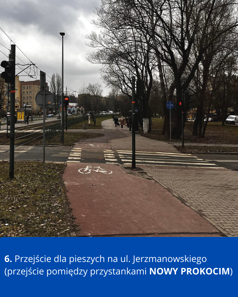 - Przejście dla pieszych przez tory przy przystanku Nowy Prokocim i przejście dla pieszych na ul. Jerzmanowskiego (przejście pomiędzy przystankami Nowy Prokocim)