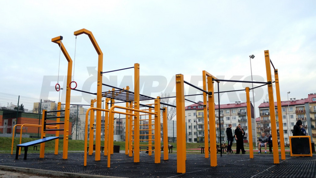 Budowa streetworkout parku, czyli zestawu urządzeń do ćwiczeń ogólnorozwojowych.