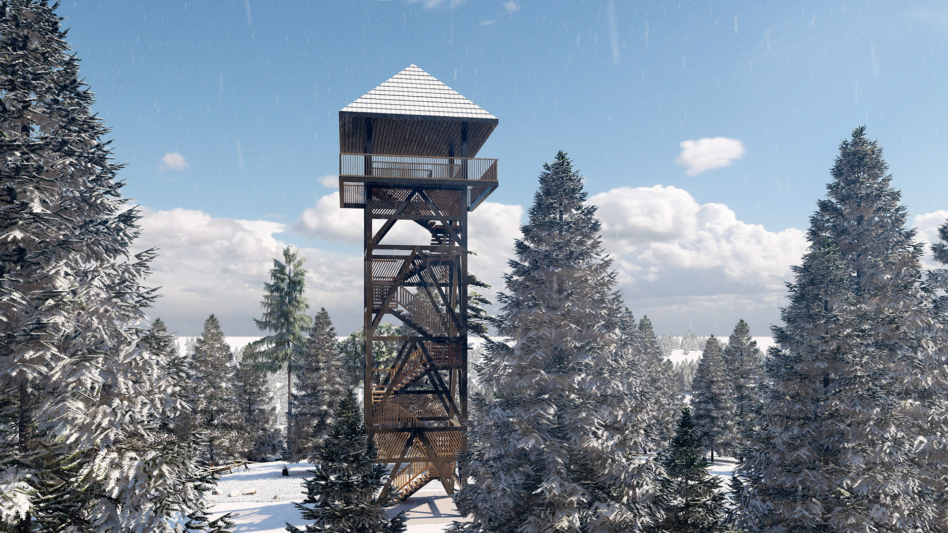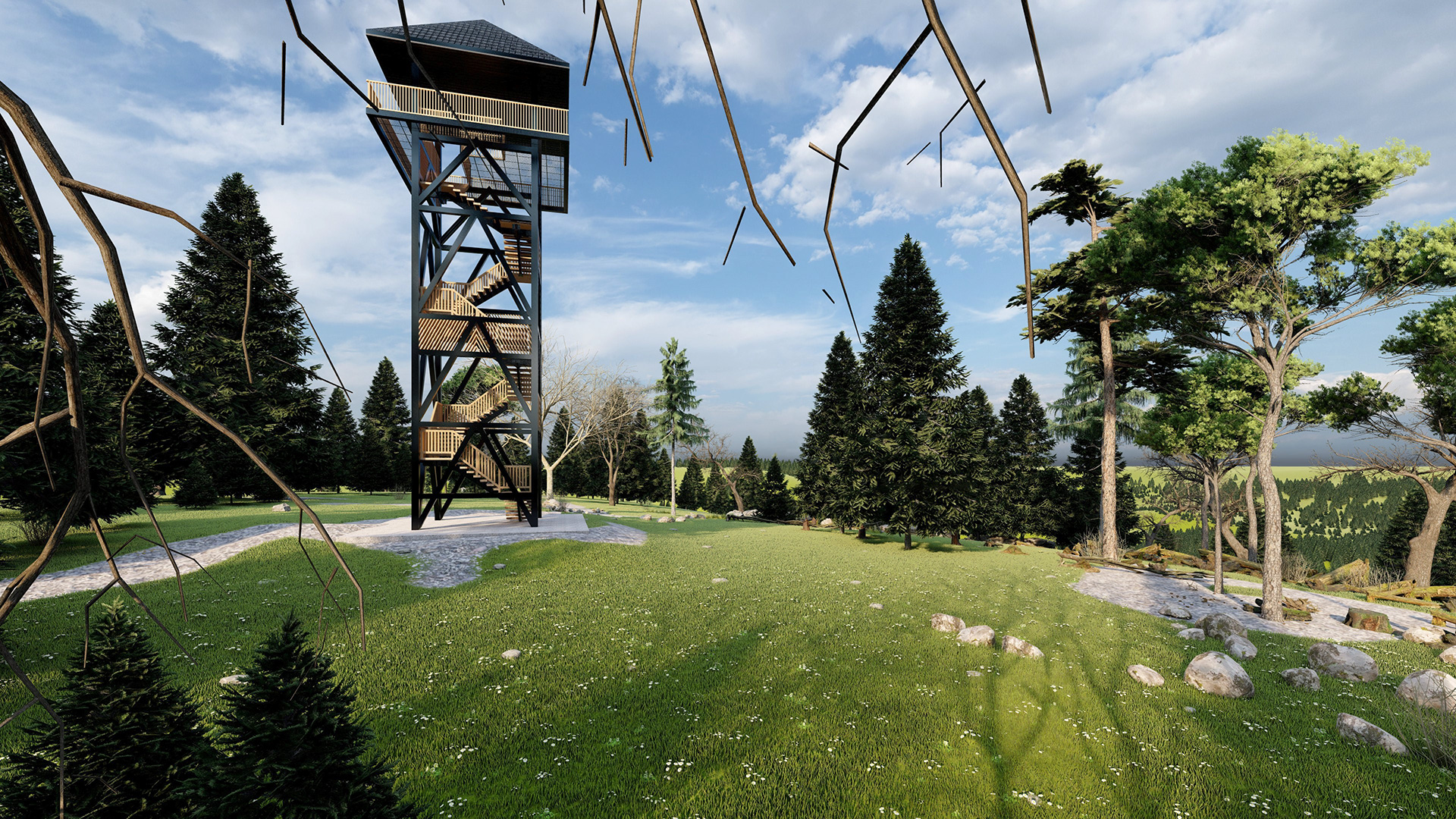 Projekt przewiduje budowę modułowej wieży widokowej (ponad koronę drzew) na jednym z najwyższych punktów n.p.m. na terenie Krakowa przy forcie 49a "Dłubnia".