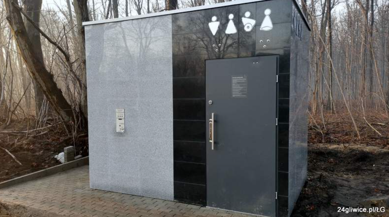 Samoobsługowa toaleta powinna być wyposażona w bezdotykowy system spłukiwania, automatyczne umywalki, składany przewijak dla niemowląt oraz udogodnienia dla osób niepełnosprawnych. Przykładowa toaleta: