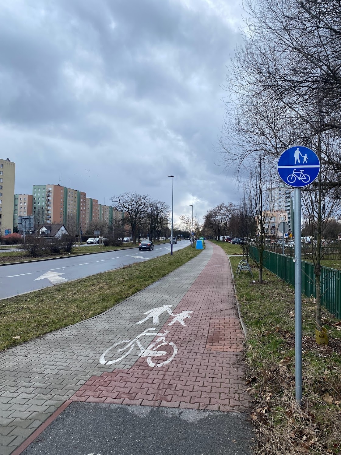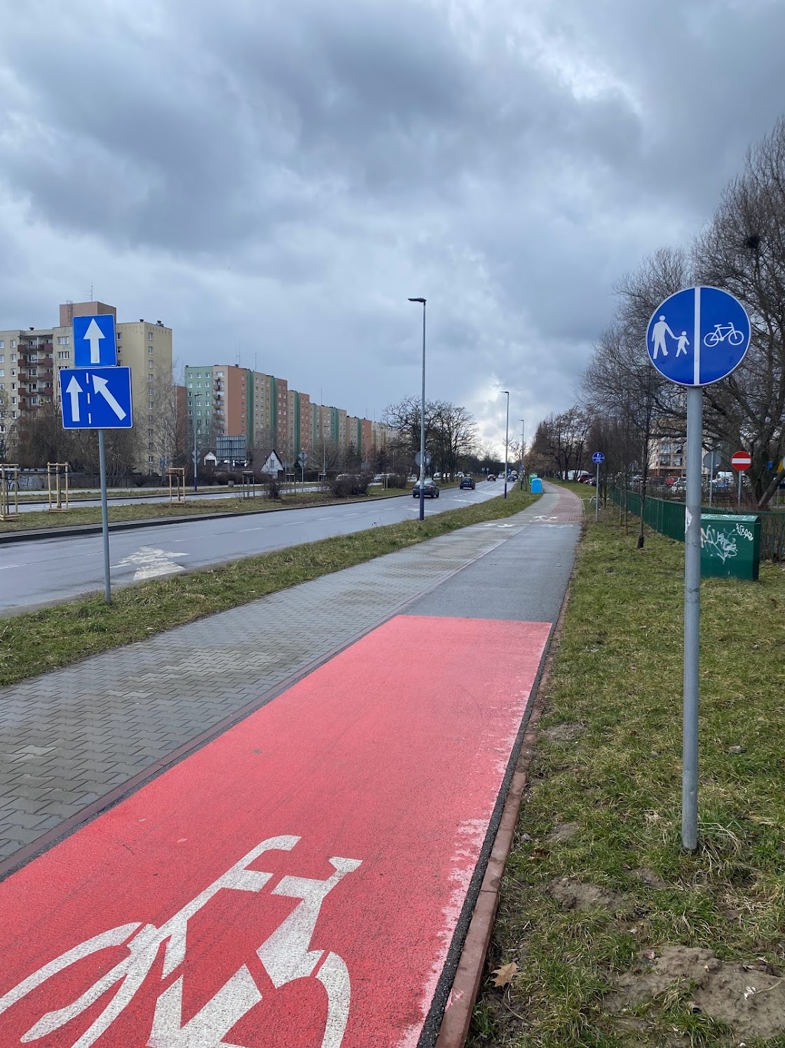 Znaki drogowe i korelująca z nimi nawierzchnia tylko na krótkim odcinku przy rondzie rozdziela ruch rowerowy od pieszego. Dalej w stronę Stella-Sawickiego piesi i rowerzyści mogą poruszać się całą szerokością co prowadzi do niebezpiecznych sytuacji. Rozdzielenie ruchu poprawi bezpieczeństwo zarówno pieszych jak i rowerzystów.