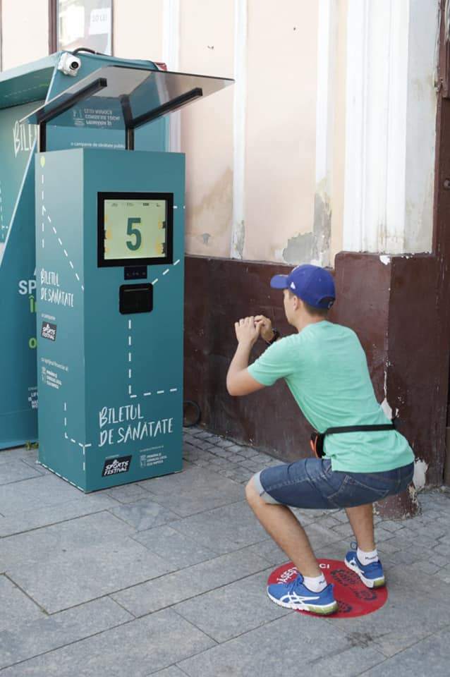 Projekt zakłada postawienie specjalnego biletomatu który w zamian za zrobienie 20 przysiadów generuje bilet 20 minutowy normalny lub ulgowy. Aby zdobyć darmowy 20-minutowy bilet na komunikację miejską należy wykonać 20 przysiadów. W tym celu należy stanąć w oznaczonym polu około 1,5 m przed biletomatem, a system kamer sprawdzi, czy przysiady wykonywane są poprawnie. Urządzenie takie zostałoby postawione na okres 2 miesięcy. Przykład urządzenia: