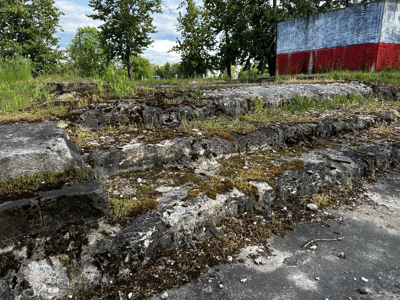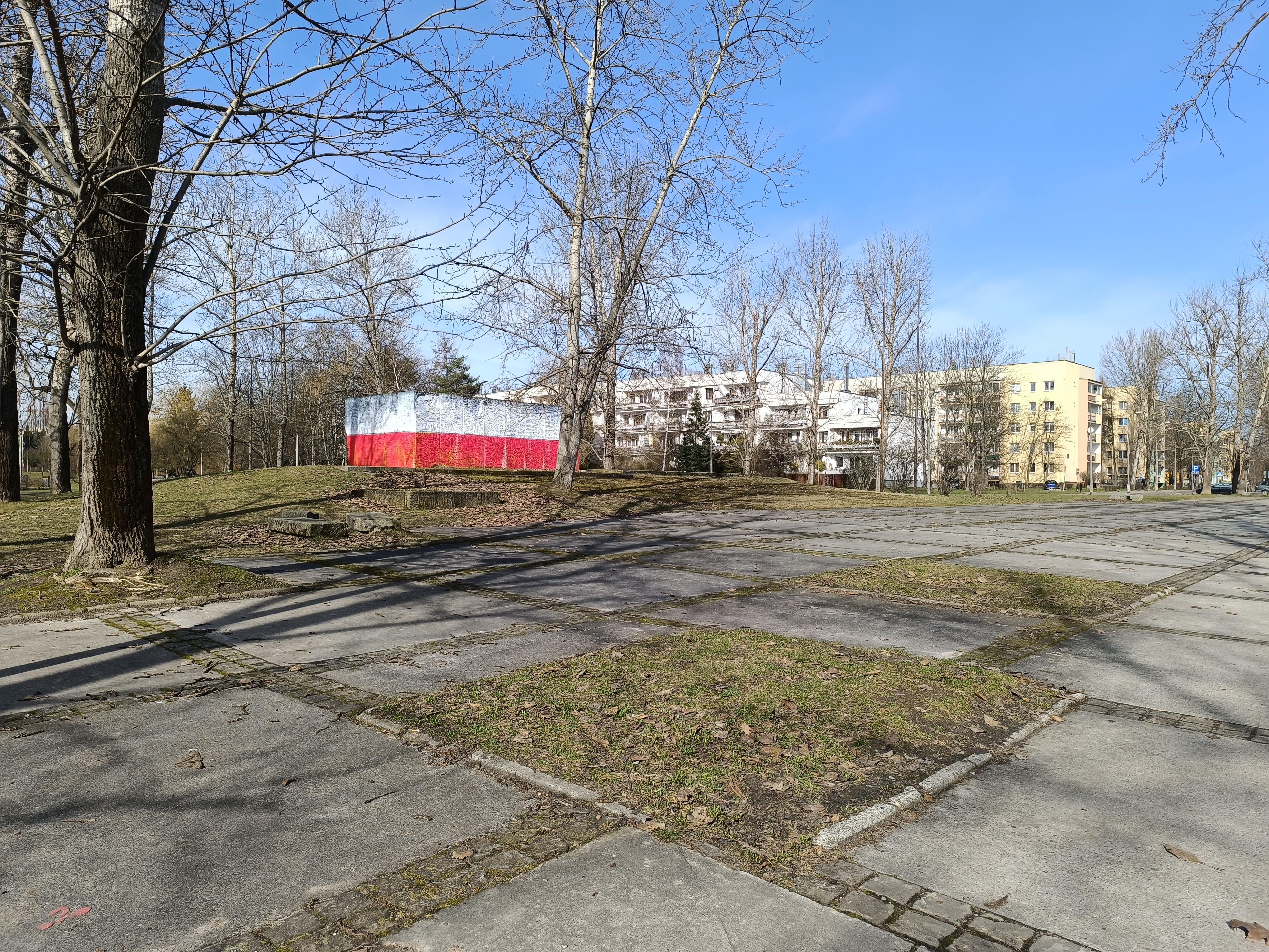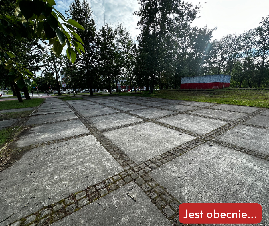 zachodniej stronie cokołu. Po usunięciu betonowych elementów ziemia zostanie wyrównana uporządkowana i przygotowana do wysiania trawy oraz łąki kwietnej. Ostatnim etapem będzie wysianie trawy i łąki kwietnej.