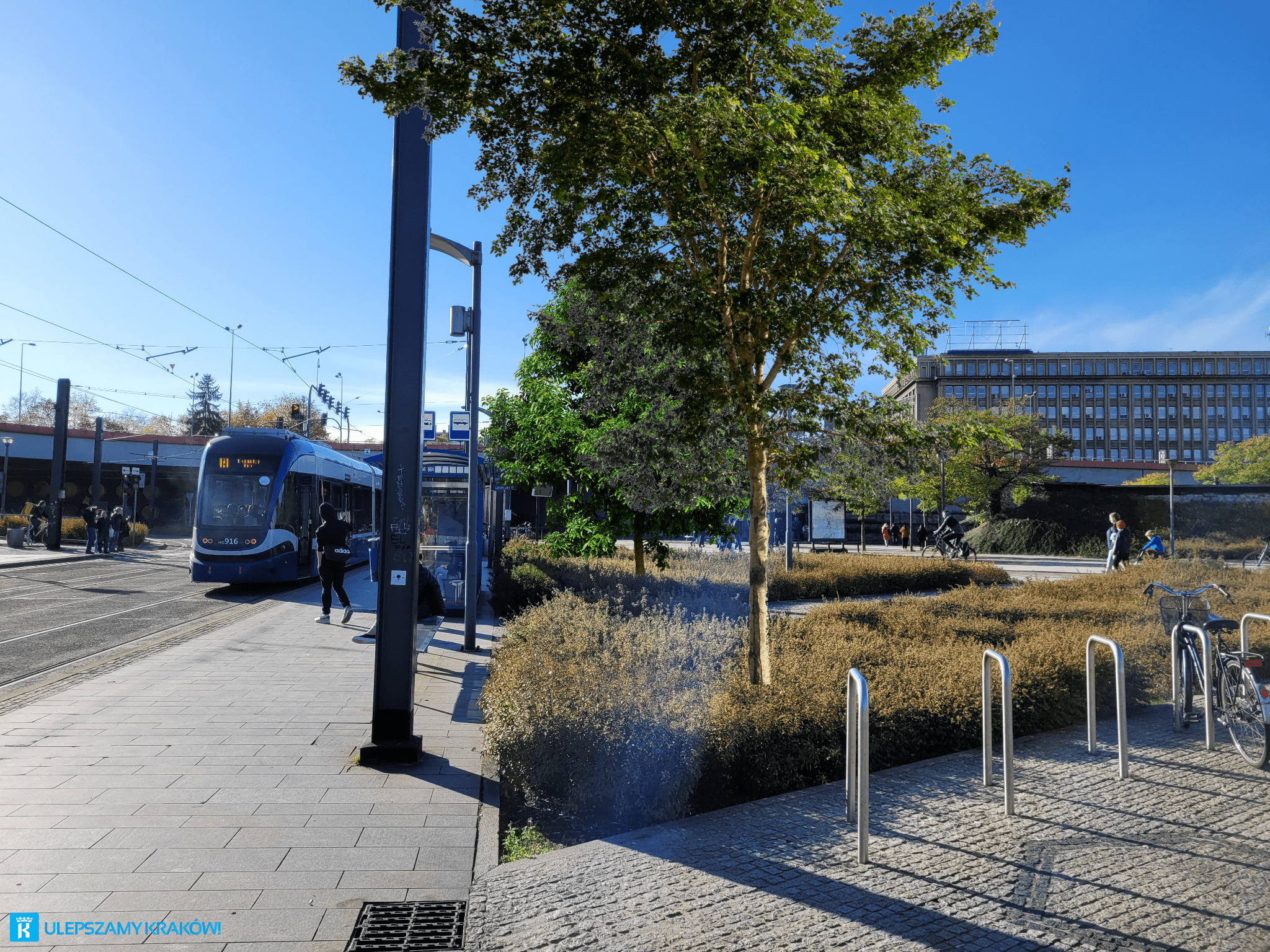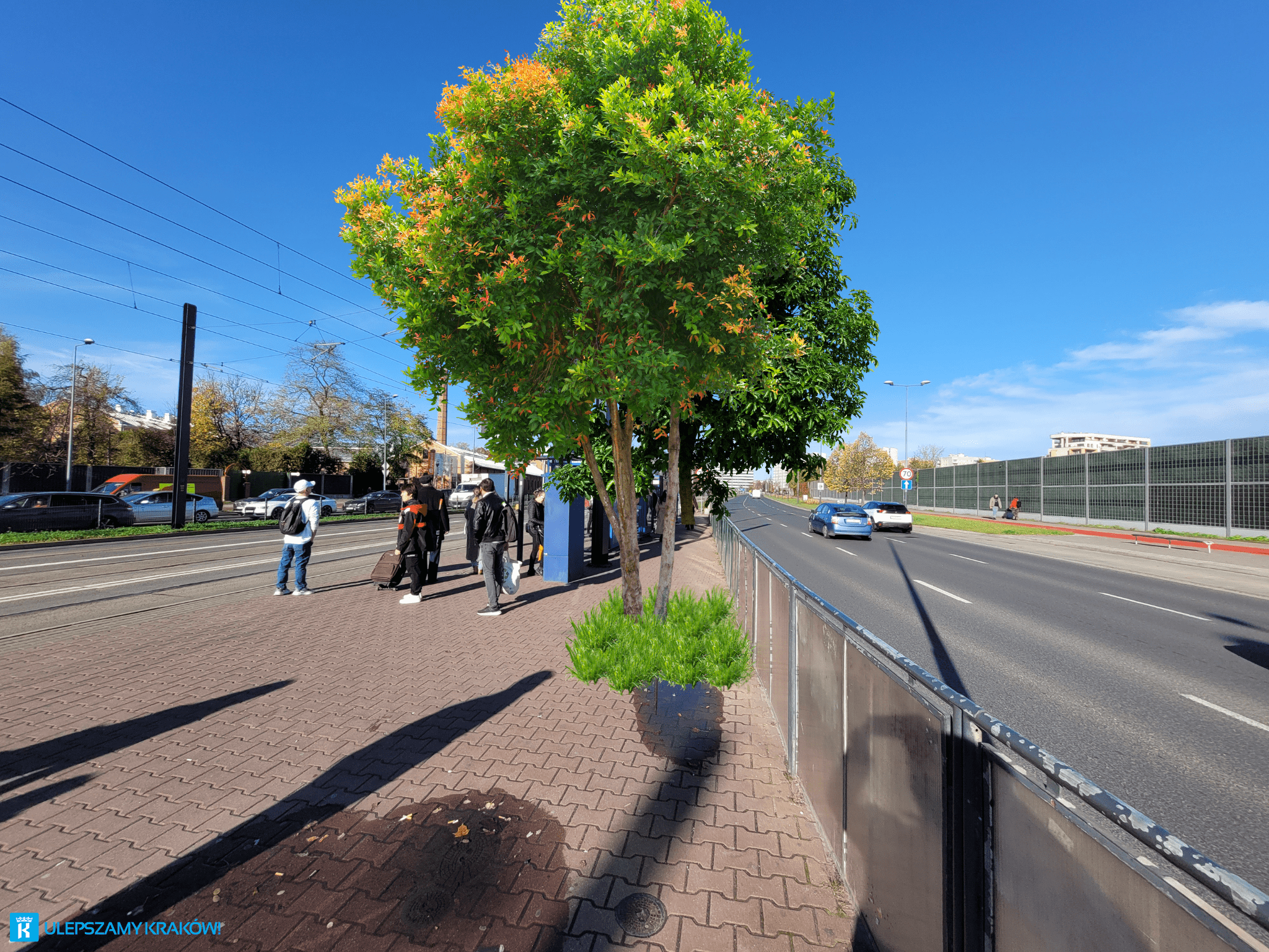 Lokalizacje nasadzeń zostały wybrane tak, żeby zieleń nie przeszkadzała pieszym w przemieszczeniu, nie ograniczała widoczności na drodze i nie kolidowała z instalacjami podziemnymi. Poniżej są zaprezentowane wizualizacje, które pokazują, gdzie nowe rośliśmy mógłby się pojawić. Projekt obejmowałby również tworzenie niewielkich trawników. Drzewa zapewniłyby trochę cienia w ciepłe dni i sprawiłyby, że przyjemniej będzie w otoczeniu zieleni oczekiwać na przystanku. Zwiększenie ilości roślin w pełnych betonu miejscach przyczyni się do obniżenia temperatur podczas upałów. Zieleń mogłoby również trochę zmniejszyć ilość spalin jakie z okolicznych dróg docierają na przystanki, bo każda dodatkowa bariera ma wpływ na jakość powietrza. Podczas ulewnych opadów olbrzymia ilość wody jaka spływa z dużych krakowskich rond jest często problemem dla niezbyt wydolnego sytemu kanalizacji. Dlatego bardzo potrzebne jest zwiększenie retencji dzięki nowym obszarom zielni.