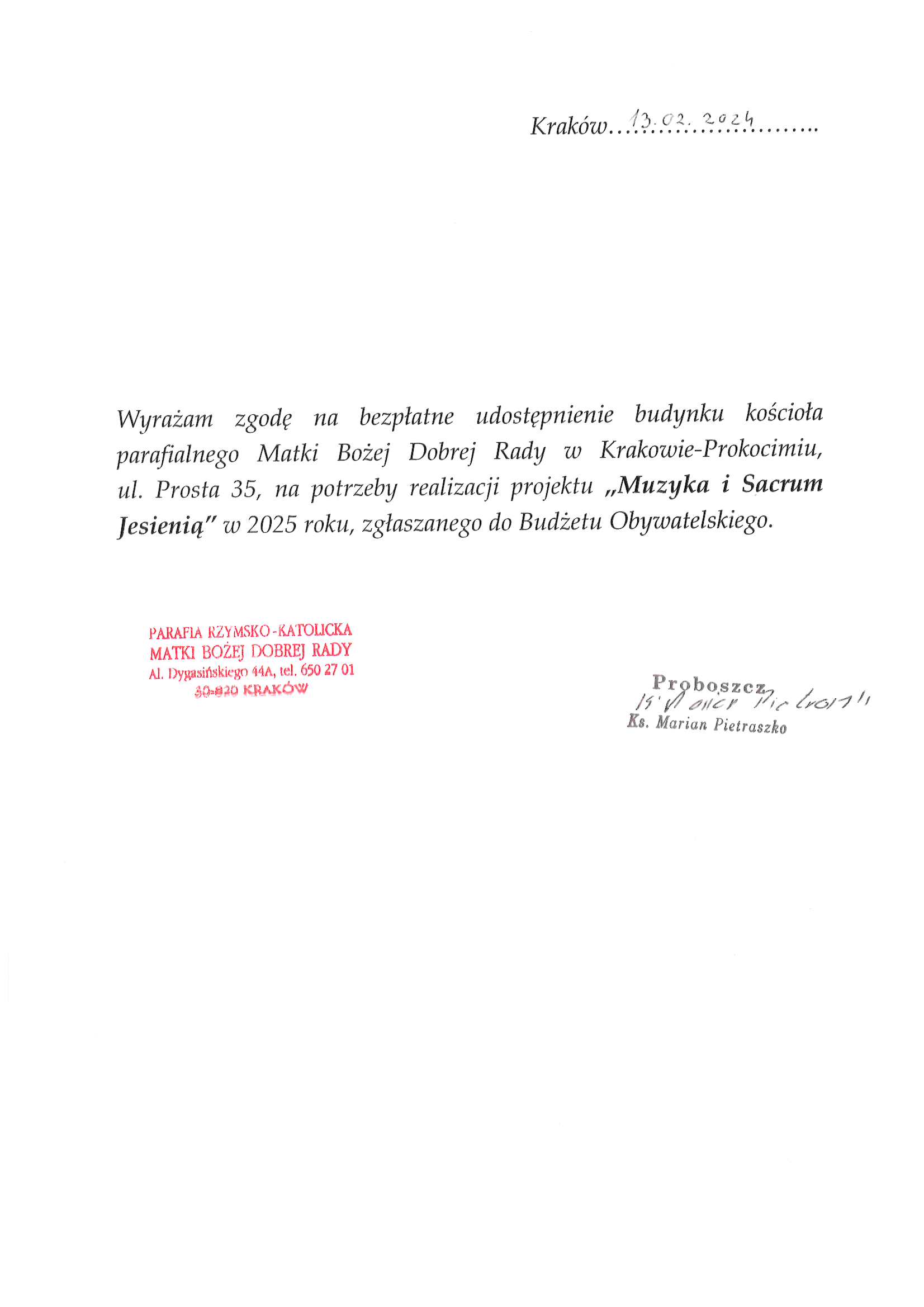 | Podsumowanie projektu | Podsumowanie prac związanych z projektem. Przygotowanie sprawozdania merytorycznego i finansowego. | Po ostatnim koncercie - w terminie zalecanym |