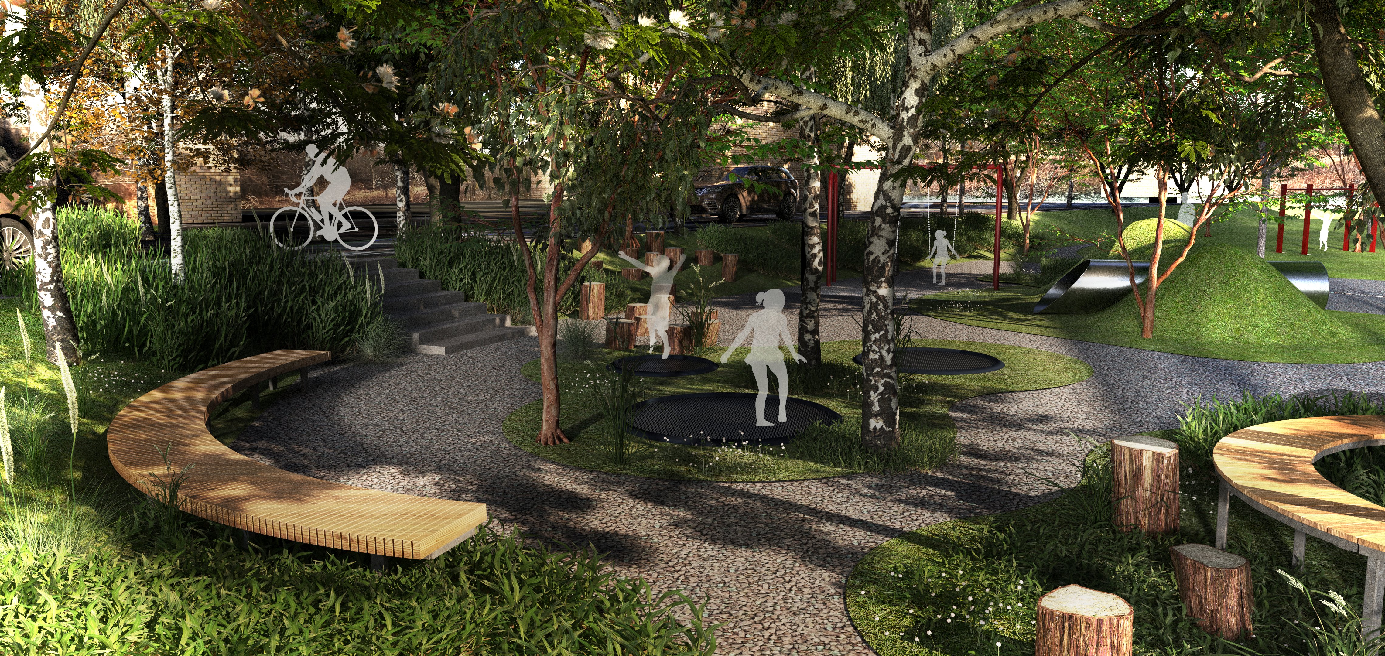 Projekt zakłada utworzenie parku kieszonkowego w sąsiedztwie Lasku Czyżyńskiego i popularnych ścieżek rowerowych (VeloMałopolska i ścieżka wzdłuż ul. Nowohuckiej). Będzie to ogólnodostępne miejsce oferujące przestrzeń piknikową i wypoczynkową (stoliki, ławki, ławkohuśtawki, hamaki), a także elementy zabawowo-rekreacyjne (leśny tor przeszkód, zjeżdżalnia, trampolina, huśtawka, drążki do podciągania). W ramach małej architektury przewiduje się też montaż koszy na śmieci i stojaków rowerowych.