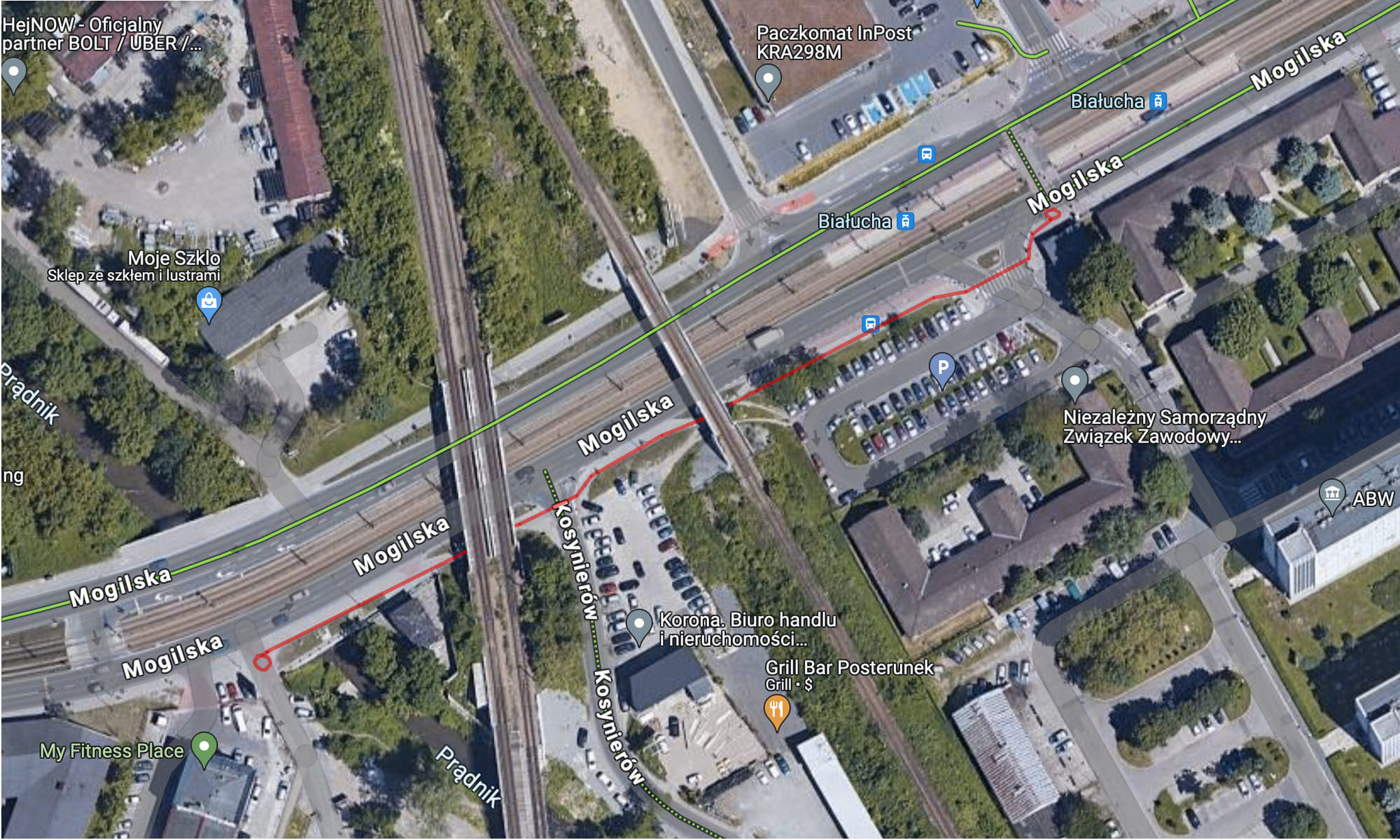 Utworzenie brakującej infrastruktury pieszo-rowerowej w ciągu ulicy Mogilskiej na odcinku od przejścia pieszo-rowerowego przy Komendzie Wojewódzkiej Policji do ulicy Fabrycznej.