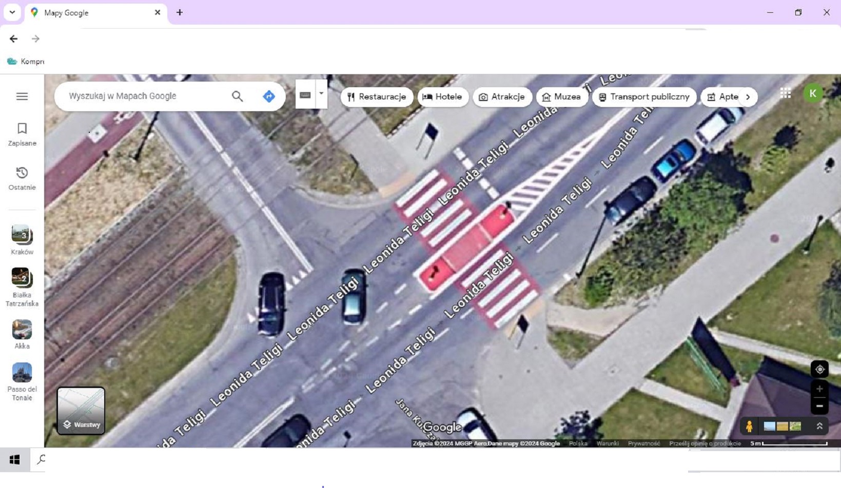 Główna lokalizacja: przejście dla pieszych ul. Teligi przy skrzyżowaniu Kurczaba/Teligi/Ściegiennego.