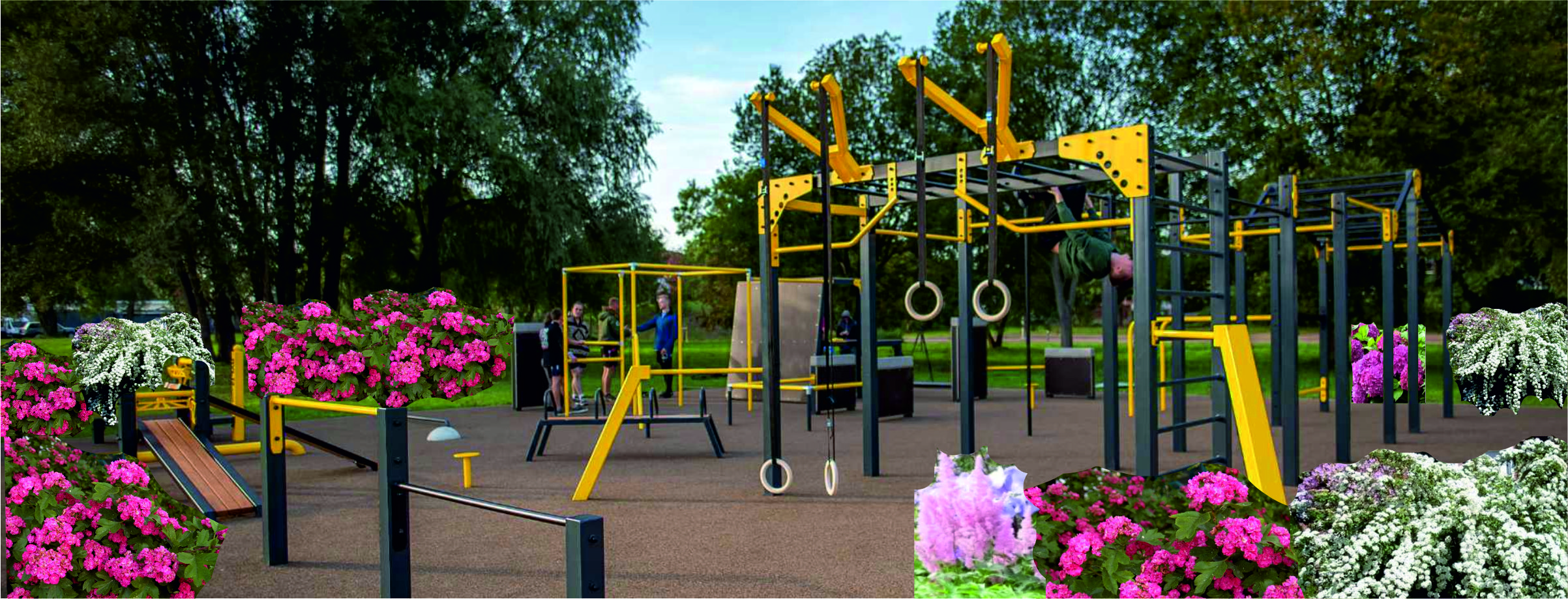 Budowa strefy aktywnego wypoczynku na świeżym powietrzu dla młodzieży oraz dorosłych. Street Workout to propozycja budowy systemu przeszkód oraz drążków do ćwiczeń na zewnątrz, w otoczeniu nasadzeń miododajnych, kwitnących krzewów.
